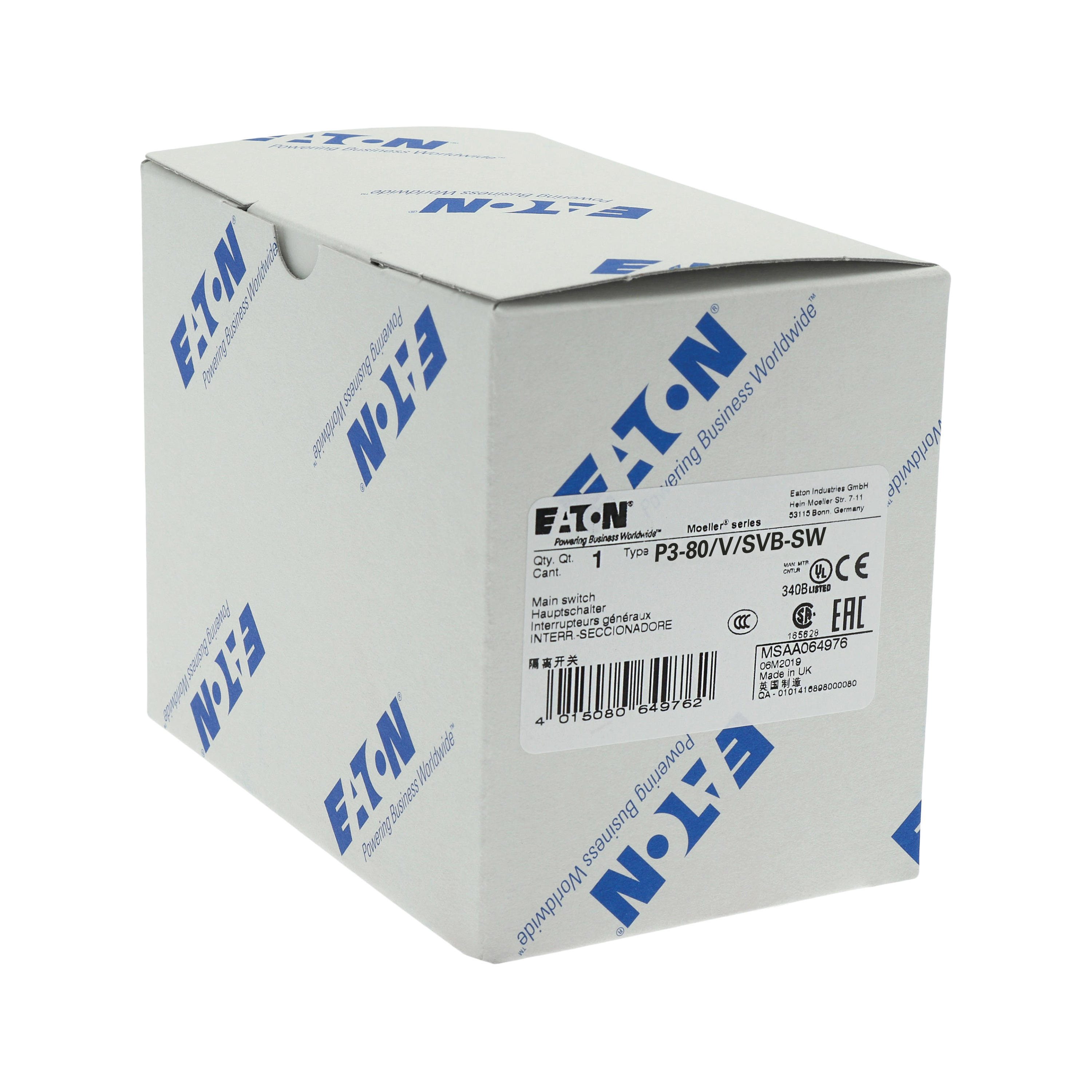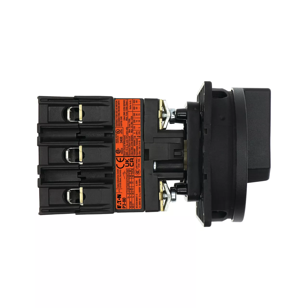 P3-80/V/SVB-SW Rozłącznik główny, 3 bieg., 80A, montaż rozłączny, pokrętło czarne z blokadą na kłódkę