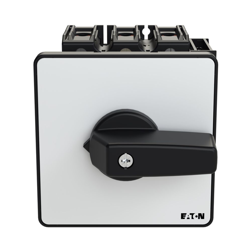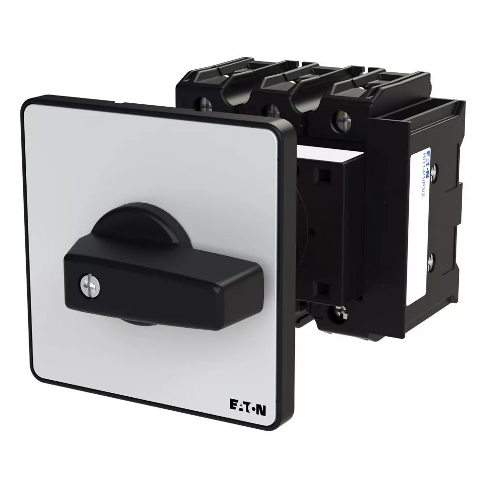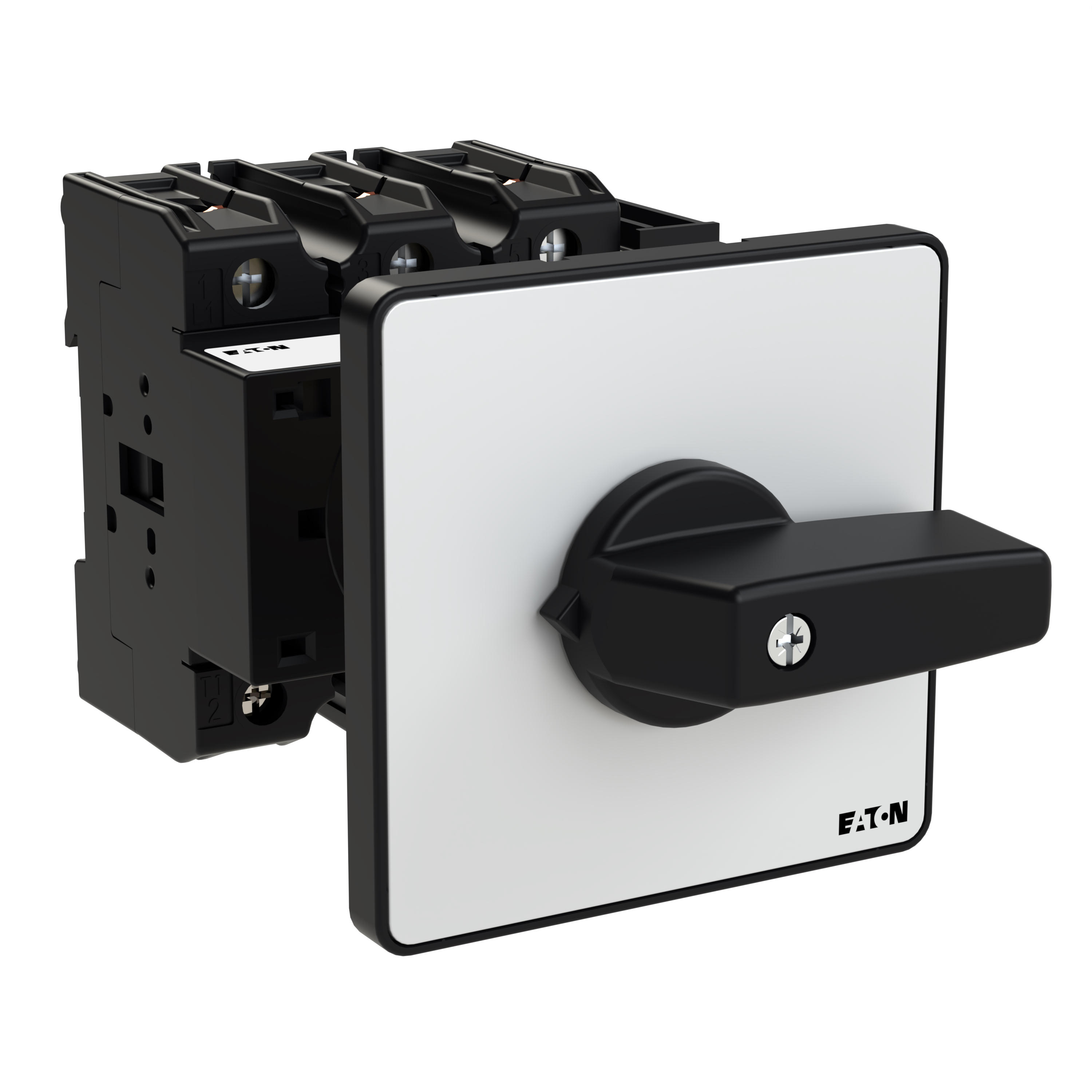 Przełącznik wł.-wył., Zacisk śrubowy: Przełącznik wł.-wył., Odniesienie grupy części P3, z czarnym pokrętłem z tabliczką czołową, Informacje dotyczące dostarczonego sprzętu: Styk pomocniczy lub przewód neutralny montowany przez użytkownika., 3-biegunowy, Stopień ochrony: Przód IP65, Projekt: montaż na panelu tylnym, Moc znamionowa AC-23A, 50 - 60 Hz 400 V: P = 55 kW, Znamionowy prąd ciągły: Iu = 100 A, Normy: IEC/EN 60947, VDE 0660, IEC/EN 60204, CSA, UL, Rozłącznik izolacyjny zgodnie z normą IEC/EN 60947-3