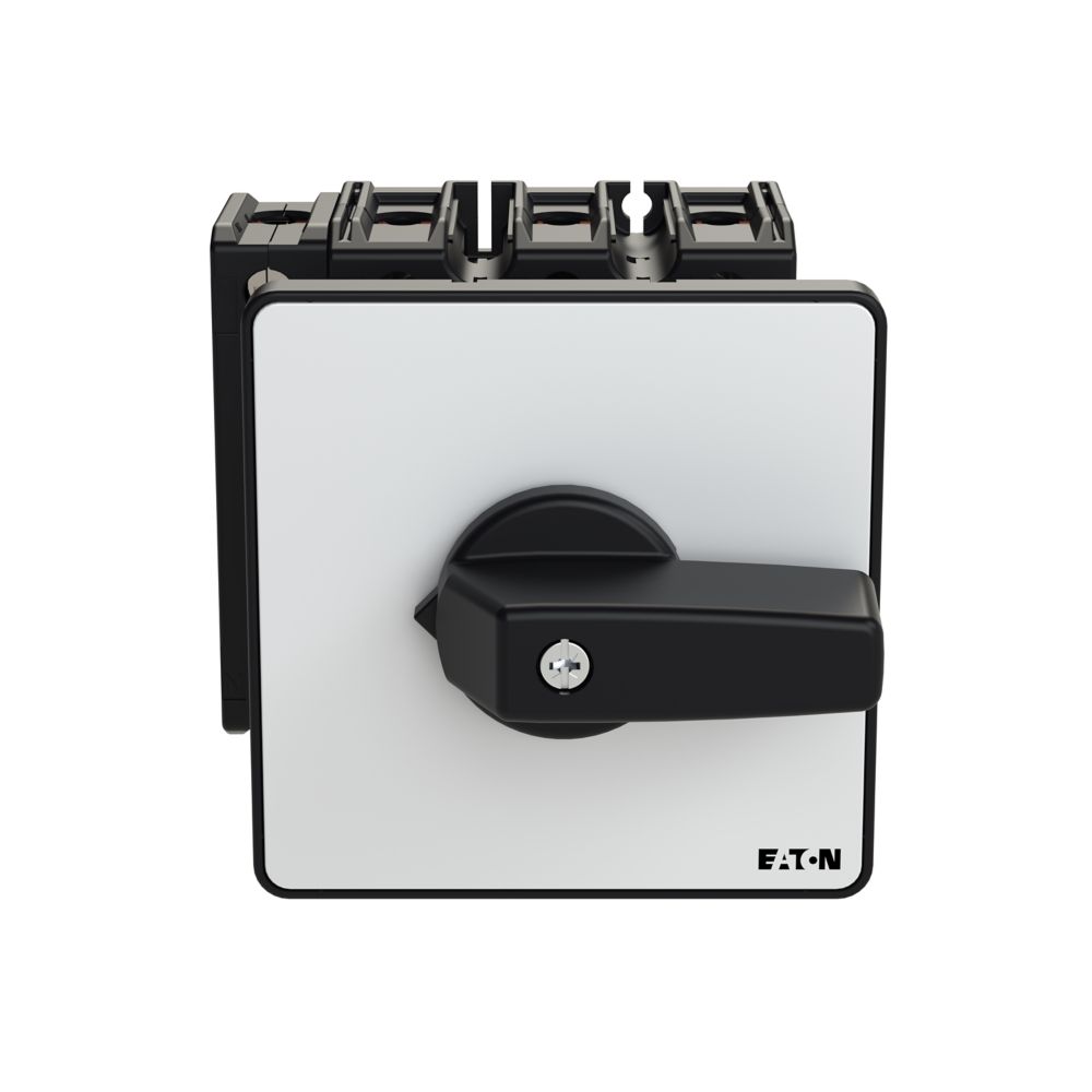 Przełącznik wł.-wył., Zacisk śrubowy: Przełącznik wł.-wył., Odniesienie grupy części P3, z czarnym pokrętłem z tabliczką czołową, Informacje dotyczące dostarczonego sprzętu: styk pomocniczy montowany przez użytkownika., 3-biegunowy + N, Stopień ochrony: Przód IP65, Projekt: montaż na panelu tylnym, Moc znamionowa AC-23A, 50 - 60 Hz 400 V: P = 55 kW, Znamionowy prąd ciągły: Iu = 100 A, Normy: IEC/EN 60947, VDE 0660, IEC/EN 60204, CSA, UL, Rozłącznik izolacyjny zgodnie z normą IEC/EN 60947-3