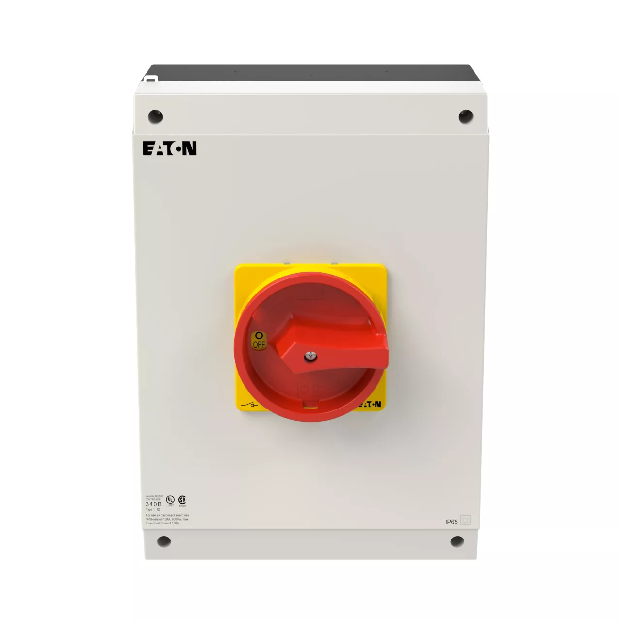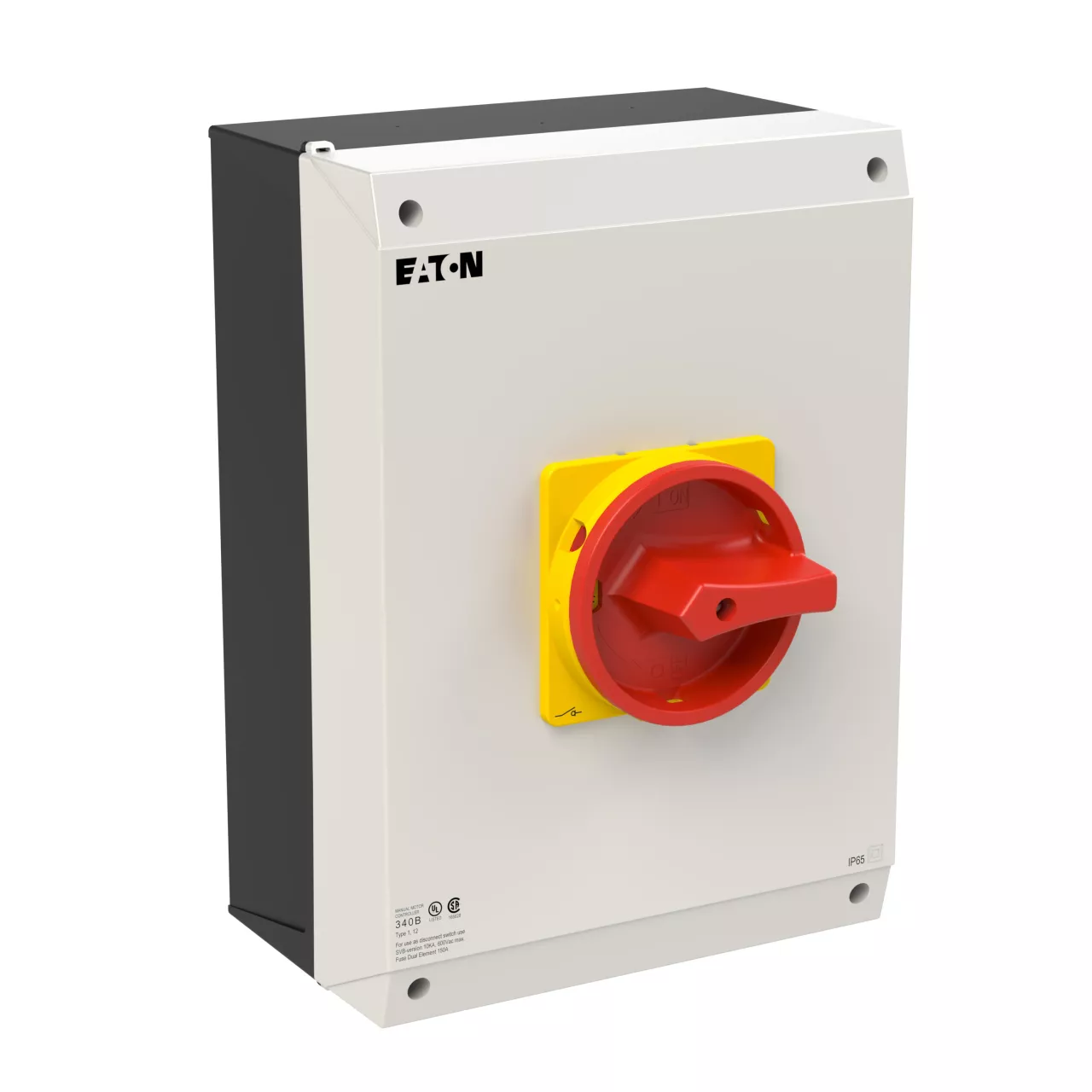P3-80/I5/SVB/2HI11 Rozłącznik ZAŁ-WYŁ, 3 bieg.+2NO+2NC, 80A, w obudowie IP65, pokrętło czerwono-żółte z blokadą na kłódkę