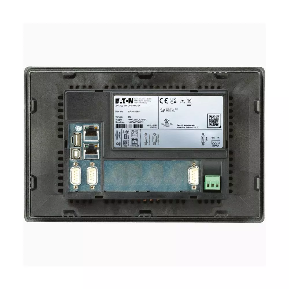 Panel dotykowy XV-303, 24 V DC, Rozmiar ekranu po przekątnej: 10,1 cala, interfejsy: 2 x Ethernet, 1 x RS-232, 1 x RS-485, 1 x CAN, System operacyjny: Linux, Pojemnościowy ekran dotykowy, PLC, Pojemność pamięci: 512000 kB, Współczynnik kontrastu wyświetlacza: 500:1, Żywotność 50 000 h (Żywotność podświetlenia), Liczba gniazd: 1 (na kartę SD)