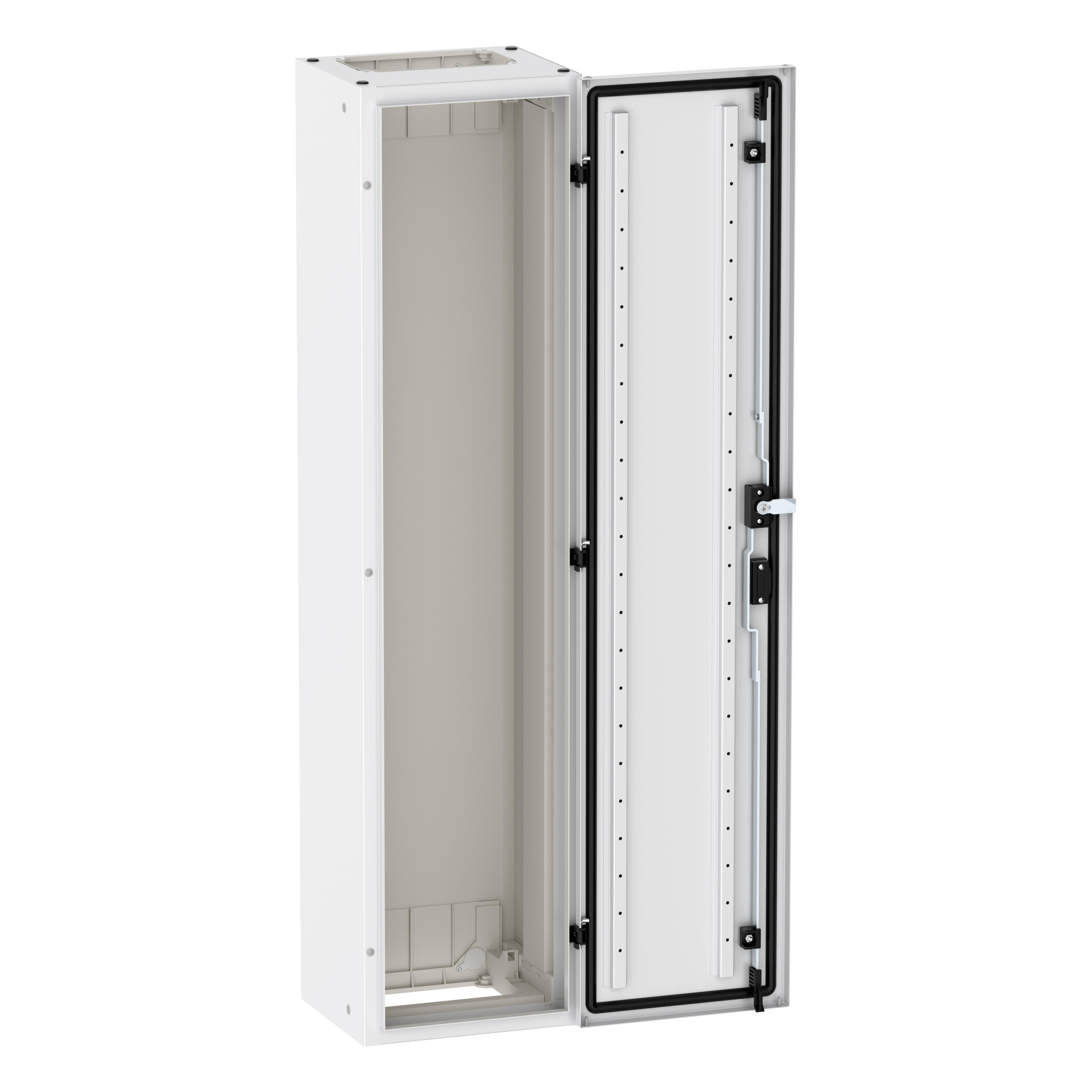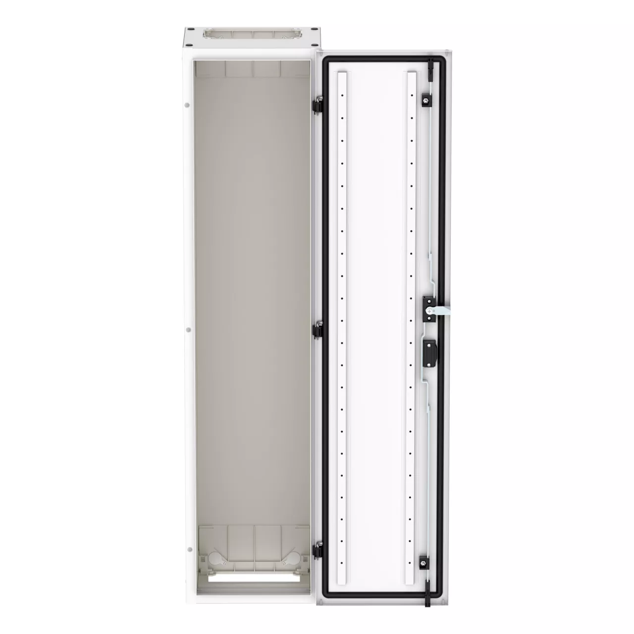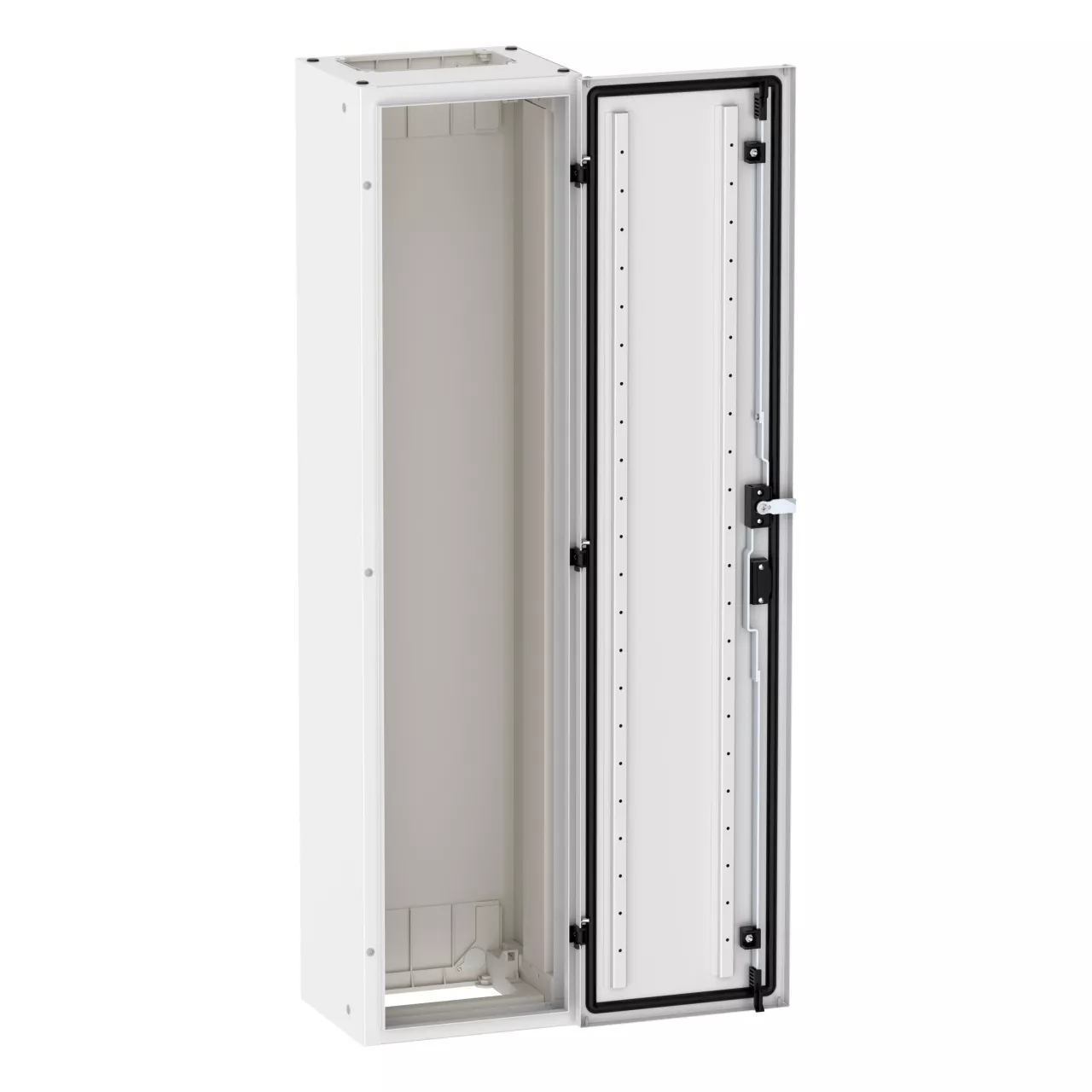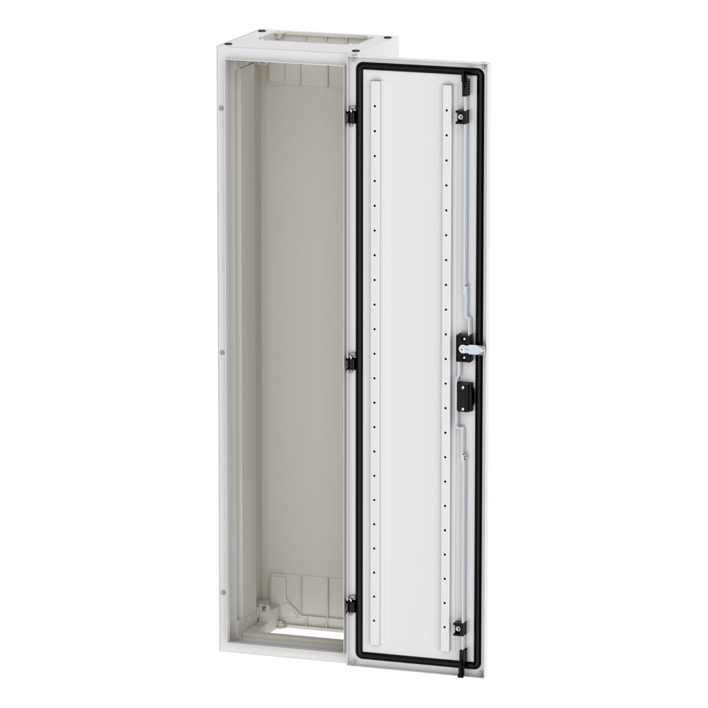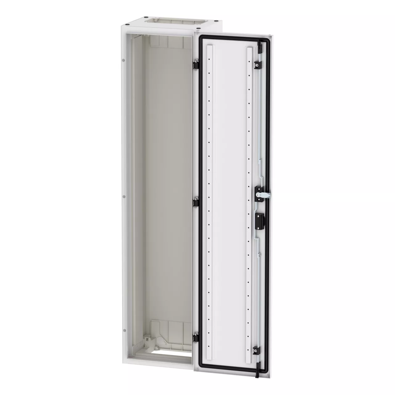 Wandmontiertes Gehäuse EP Modular Class 2 (EMC2) leer, IP55, Schutzklasse II, HxBxT=1250x300x270 mm, weiß (RAL 9016), pulverbeschichtetes Gehäuse aus Stahlblech, vollständig innen isoliert, gemäß Anforderungen der Schutzklasse II, vorbereitet für F3A-Flansche oben/unten, Tür mit externen Scharnieren, 180° Öffnungswinkel, Standardlieferung mit Schwenkhebel, rundum geschäumte Türdichtung, zur Verwendung mit EP Installationssystem für Innenausstattung;