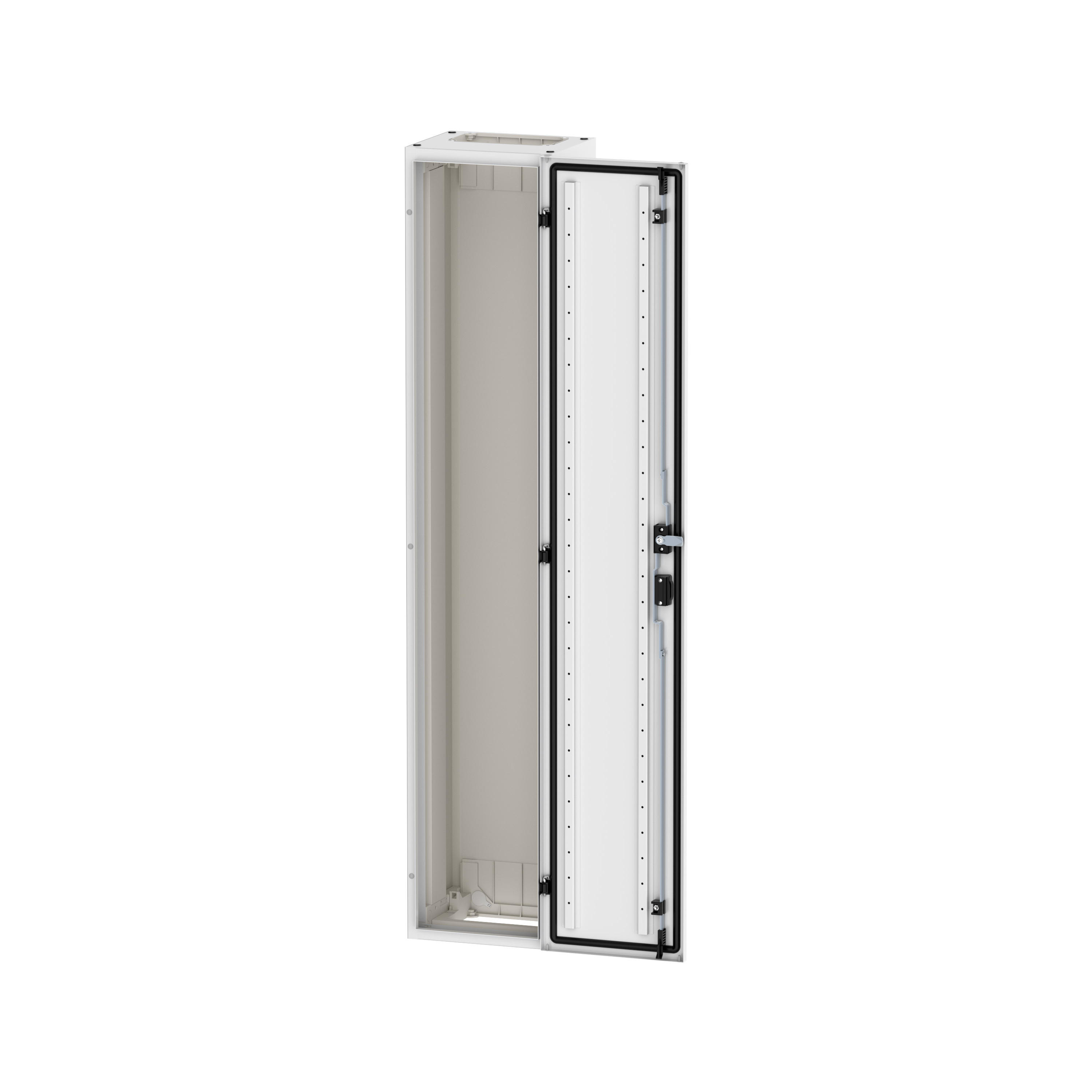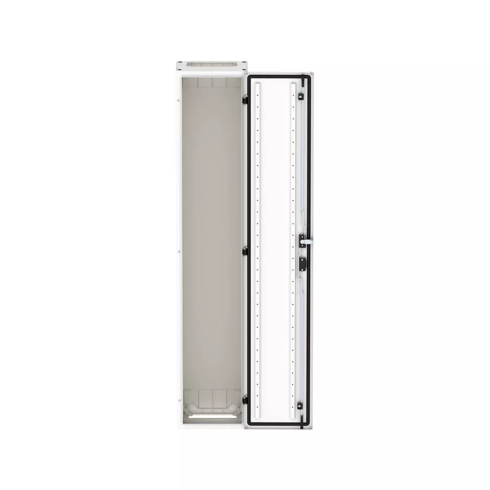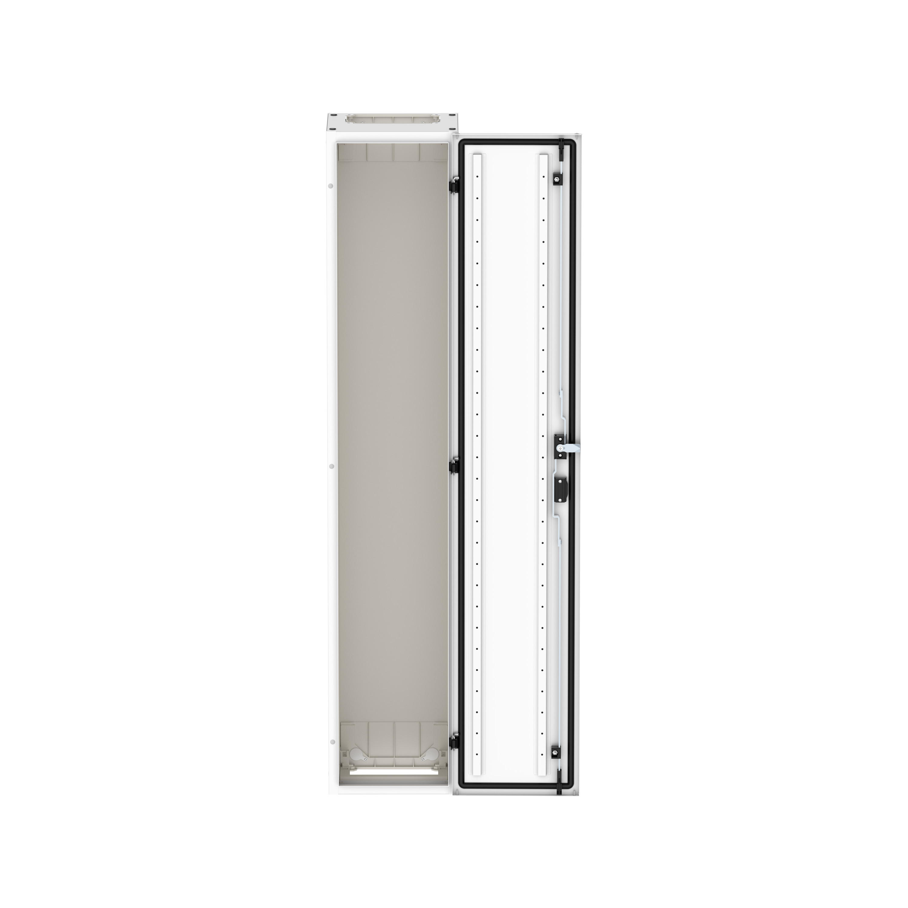Standverteiler EP Modular Class 2 (EMC2) leer, IP55, Schutzklasse II, HxBxT=1550x300x270 mm, weiß (RAL 9016), pulverbeschichtetes Gehäuse aus Stahlblech, vollständig innen isoliert, gemäß Anforderungen der Schutzklasse II, vorbereitet für F3A-Flansche oben/unten, Tür mit externen Scharnieren, 180° Öffnungswinkel, Standardlieferung mit Schwenkhebel, rundum geschäumte Türdichtung, zur Verwendung mit EP Installationssystem für Innenausstattung;