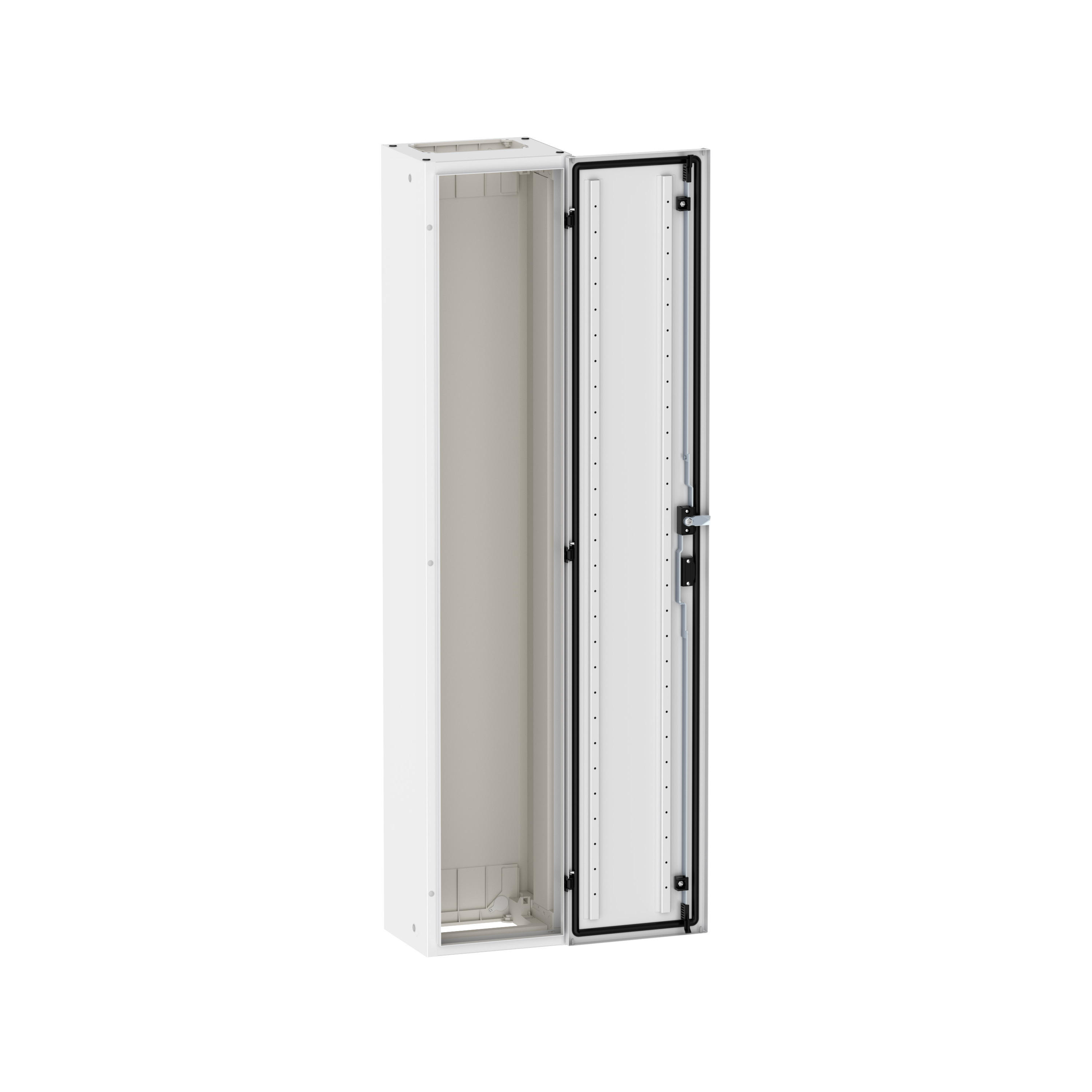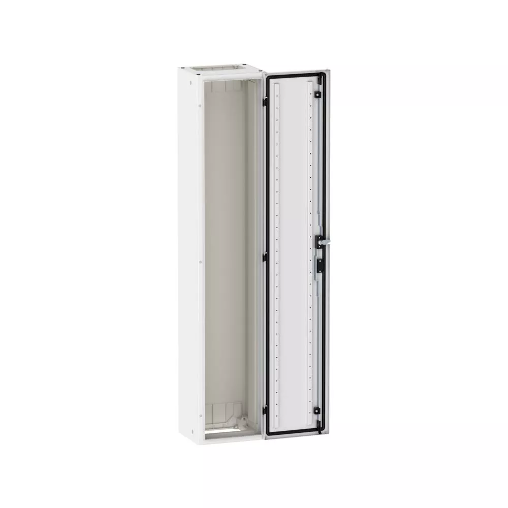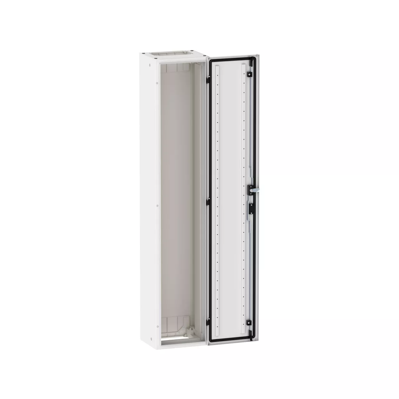 Standverteiler EP Modular Class 2 (EMC2) leer, IP55, Schutzklasse II, HxBxT=1550x300x270 mm, weiß (RAL 9016), pulverbeschichtetes Gehäuse aus Stahlblech, vollständig innen isoliert, gemäß Anforderungen der Schutzklasse II, vorbereitet für F3A-Flansche oben/unten, Tür mit externen Scharnieren, 180° Öffnungswinkel, Standardlieferung mit Schwenkhebel, rundum geschäumte Türdichtung, zur Verwendung mit EP Installationssystem für Innenausstattung;