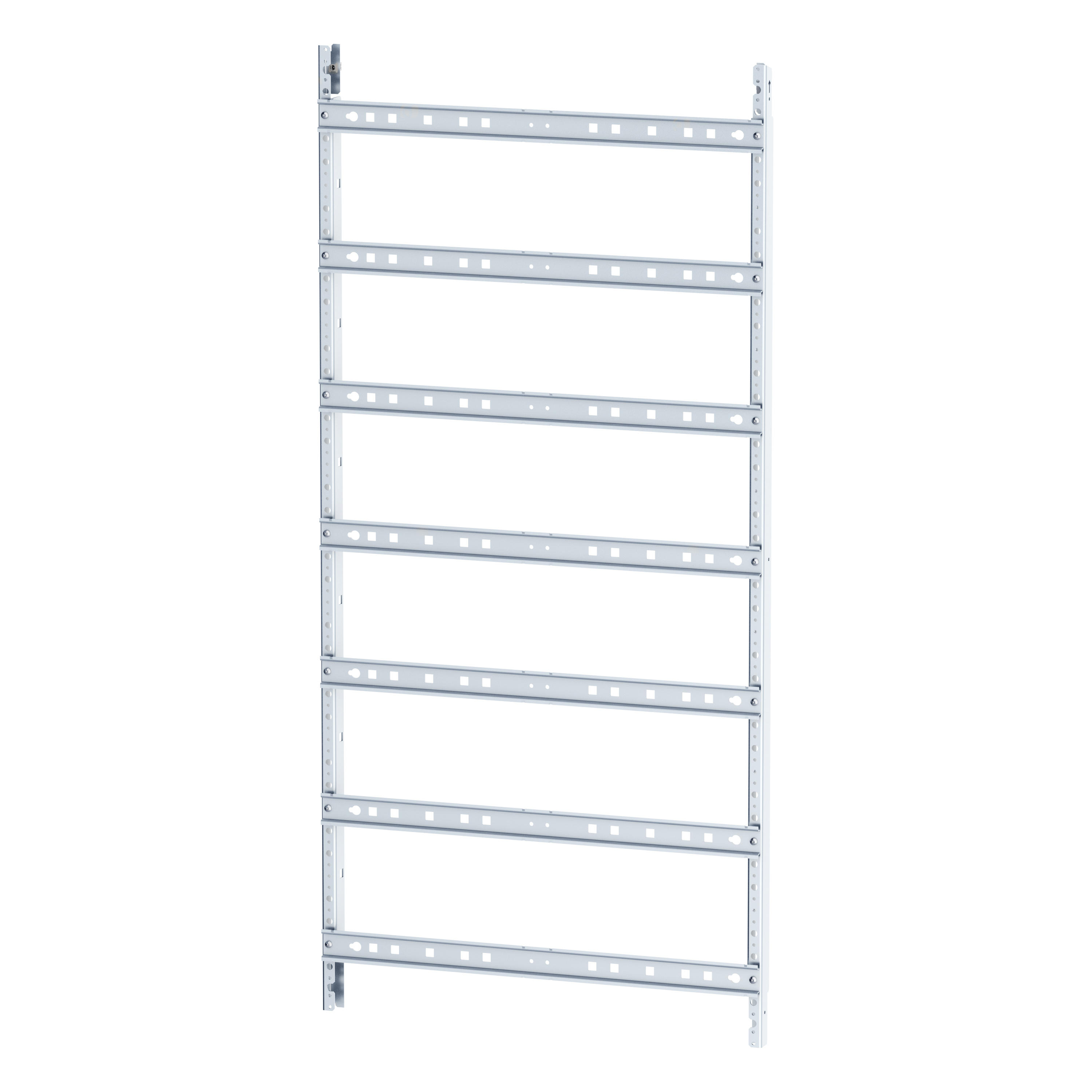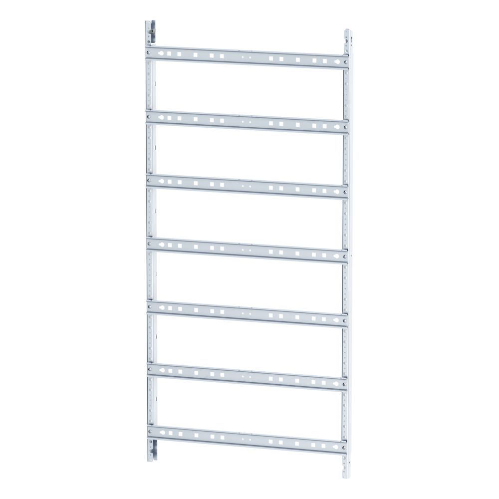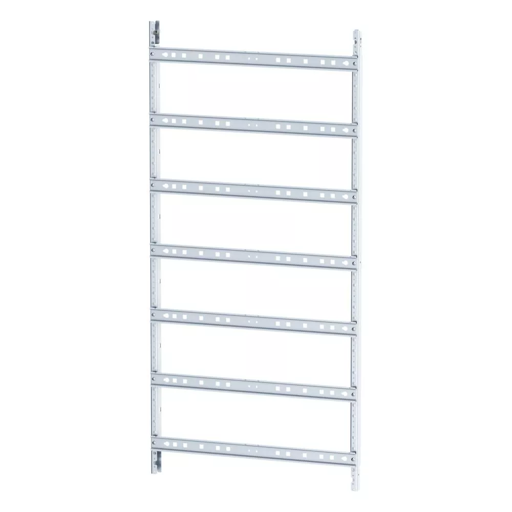 Vormontierter Montageeinsatz für Verteilerfeld als Teil des EP-Systems, HxB=1050x500mm, 7-reihig, bestehend aus: EPTV-Profilen und DIN-Schienen, verwendbar für EMC2 Gehäuseserie