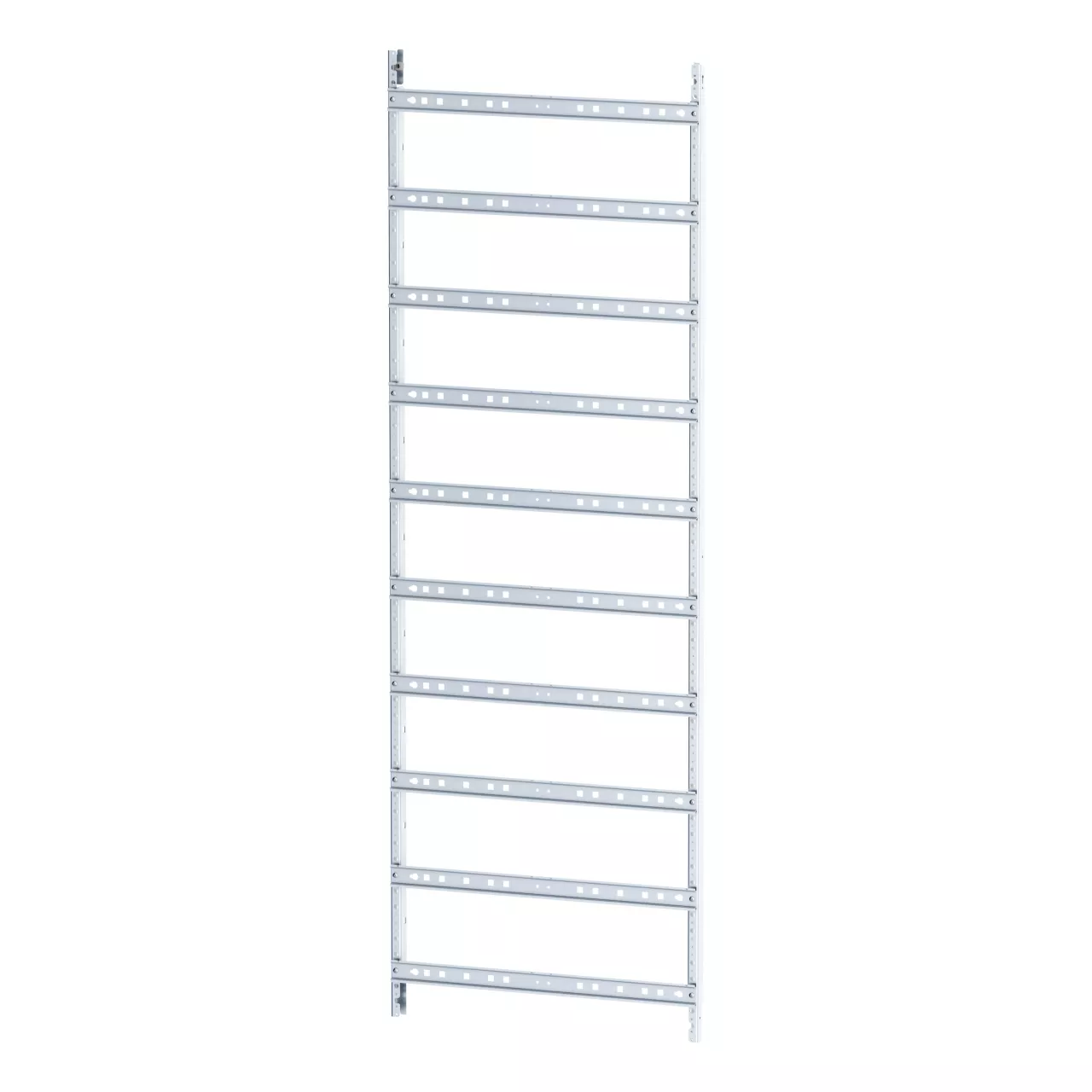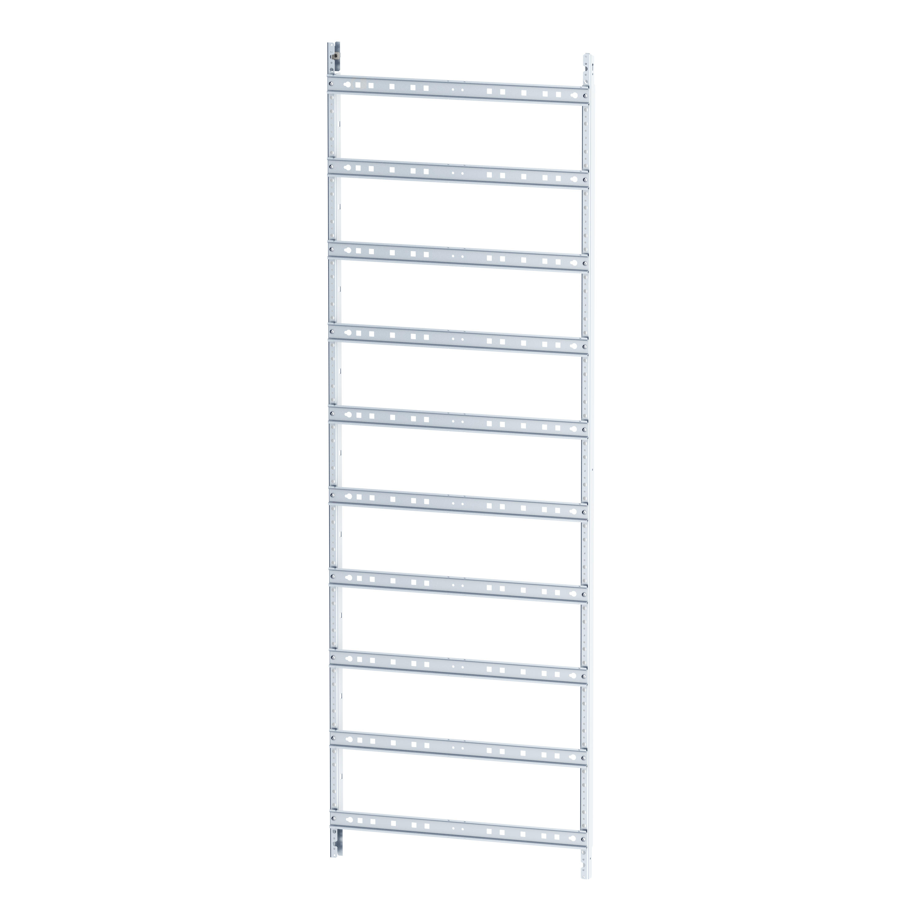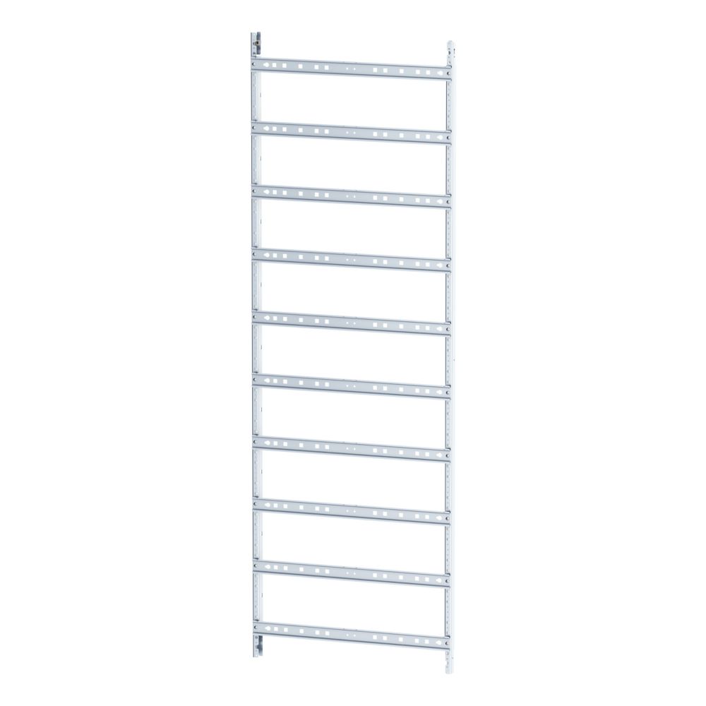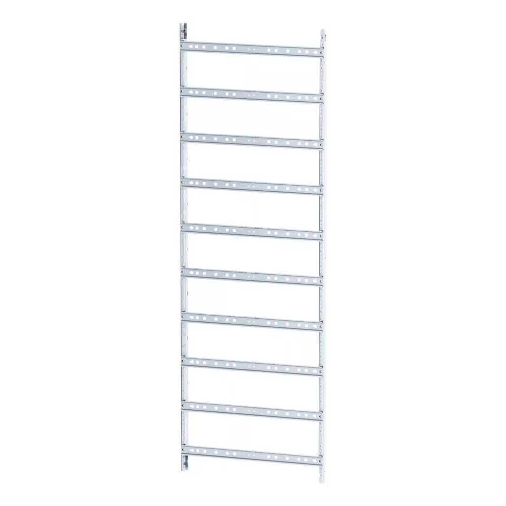 Vormontierter Montageeinsatz für Verteilerfeld als Teil des EP-Systems, HxB=1500x500mm, 10-reihig, bestehend aus: EPTV-Profilen und DIN-Schienen, verwendbar für EMC2 Gehäuseserie