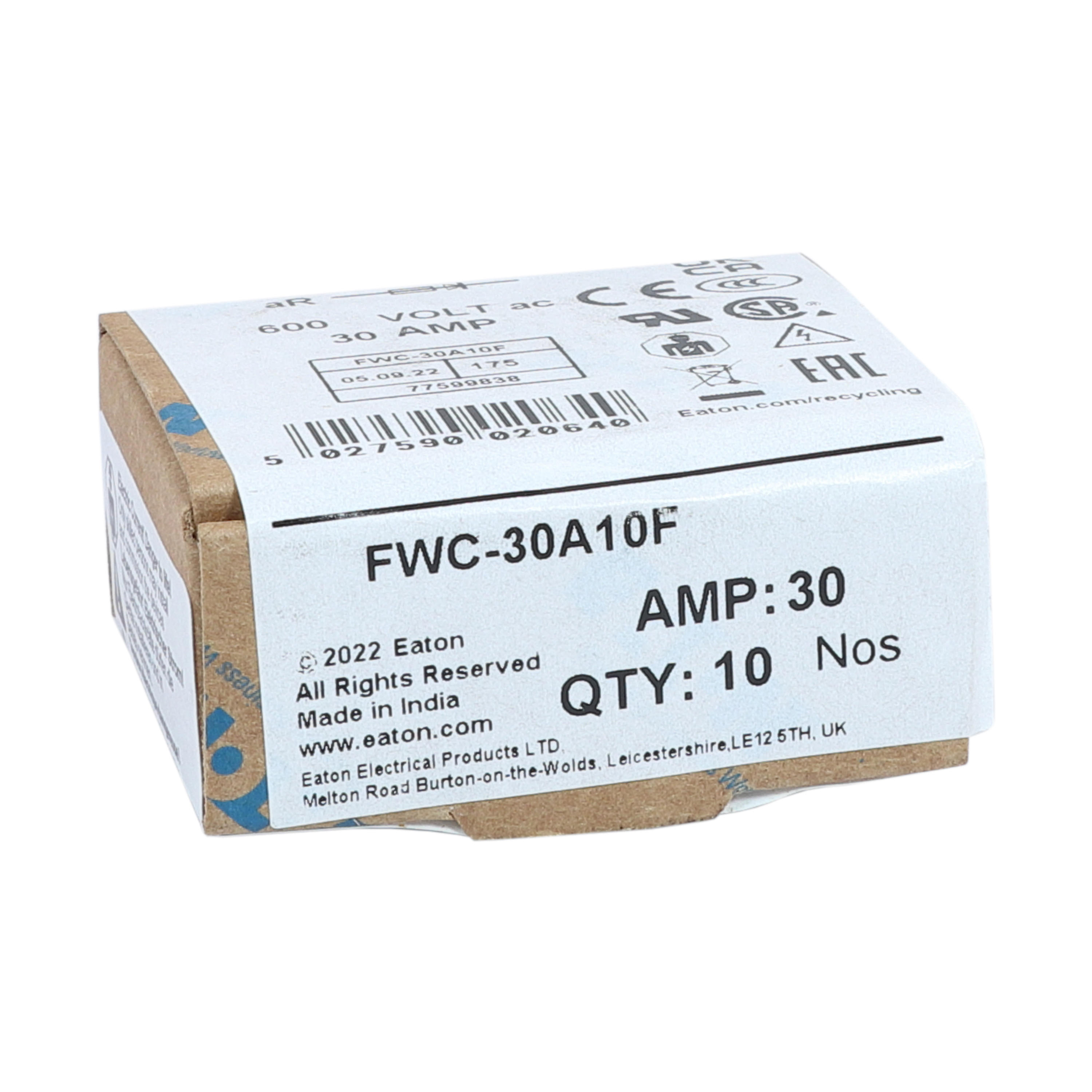 FWC-30A10F Wkładka szybka, 30 A, AC 600 V, 10 x 38 mm, aR, UL
