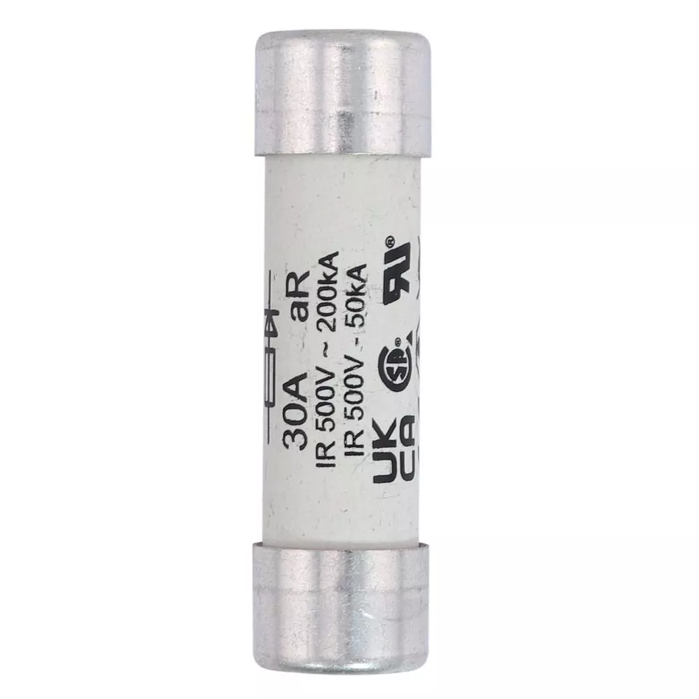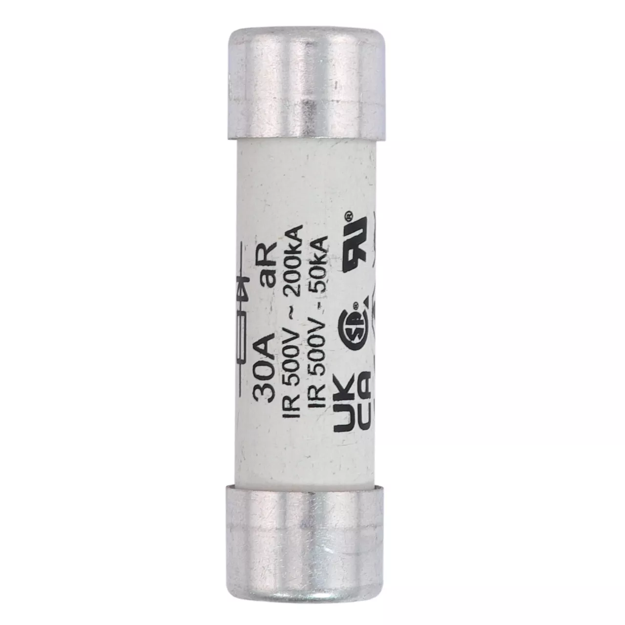 Bezpiecznik, wkładka bezpiecznikowa, szybki, 30 A, 500 V AC, 14 x 51 mm, aR, UL, cylindryczny, wspólna szyna DC, napędy DC, przekształtniki mocy /prostowniki i rozruszniki o obniżonym napięciu, UL 248, zdolność wyłączania 50 kA