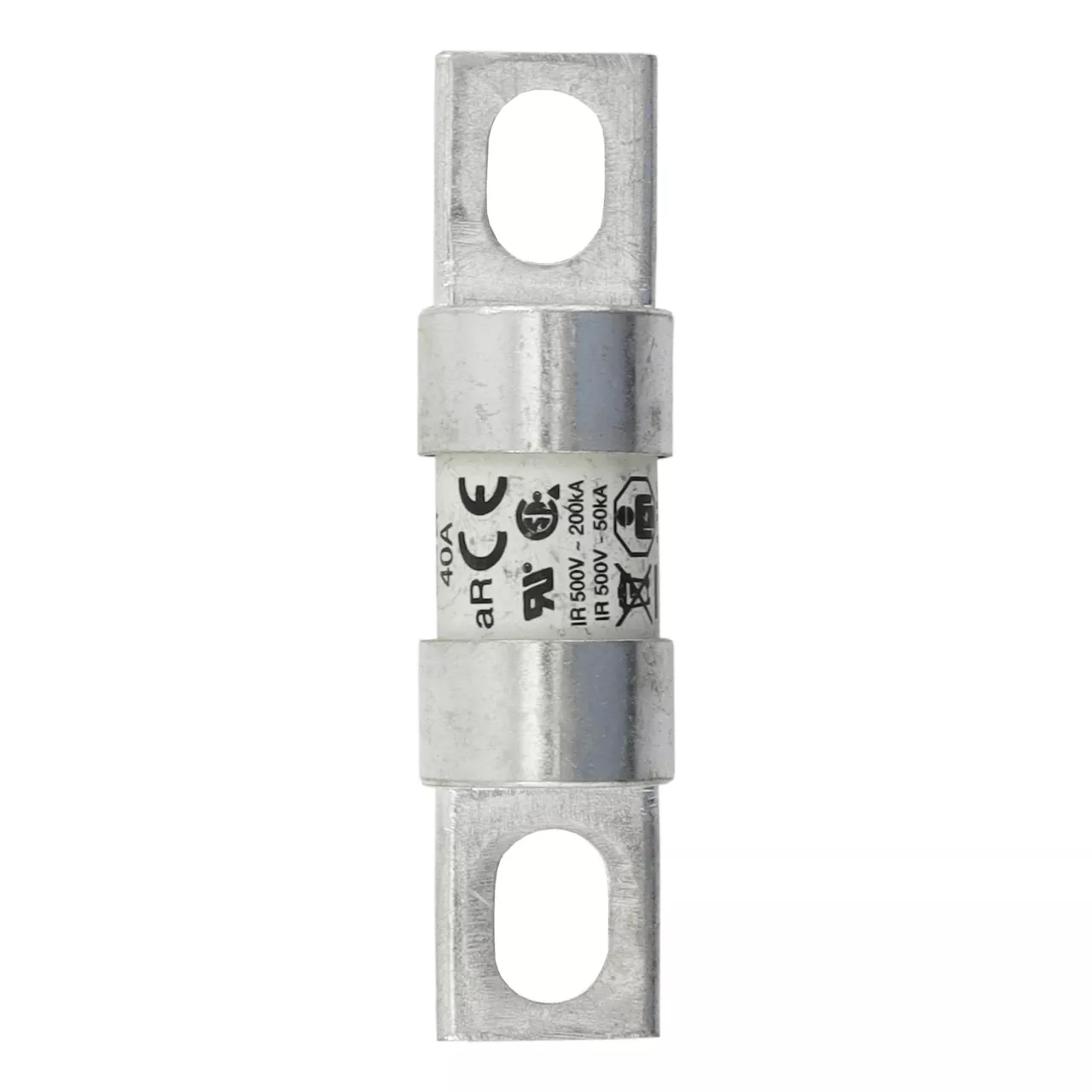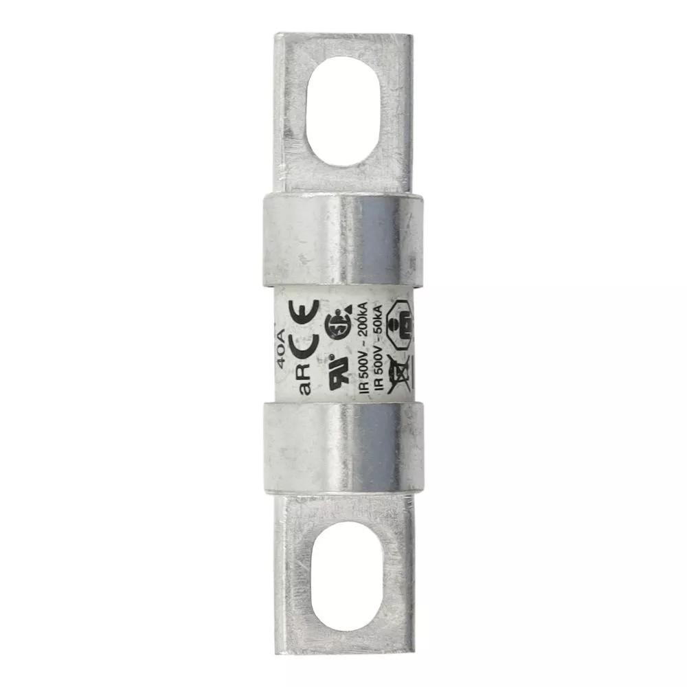 Sicherung, Sicherungseinsatz, superflink, 40 A, AC 500 V, DC 500 V, 21 x 81 mm, UL, zylindrisch mit mittenverschraubten Anschlussfahnen, DC-Gemeinschaftsbus, DC-Antriebe, Leistungsumrichter/Gleichrichter und Anlasser mit reduzierter Spannung, UL 248, Ausschaltvermögen 200 kA, Zubehör optional Sicherungshalter BH Serie