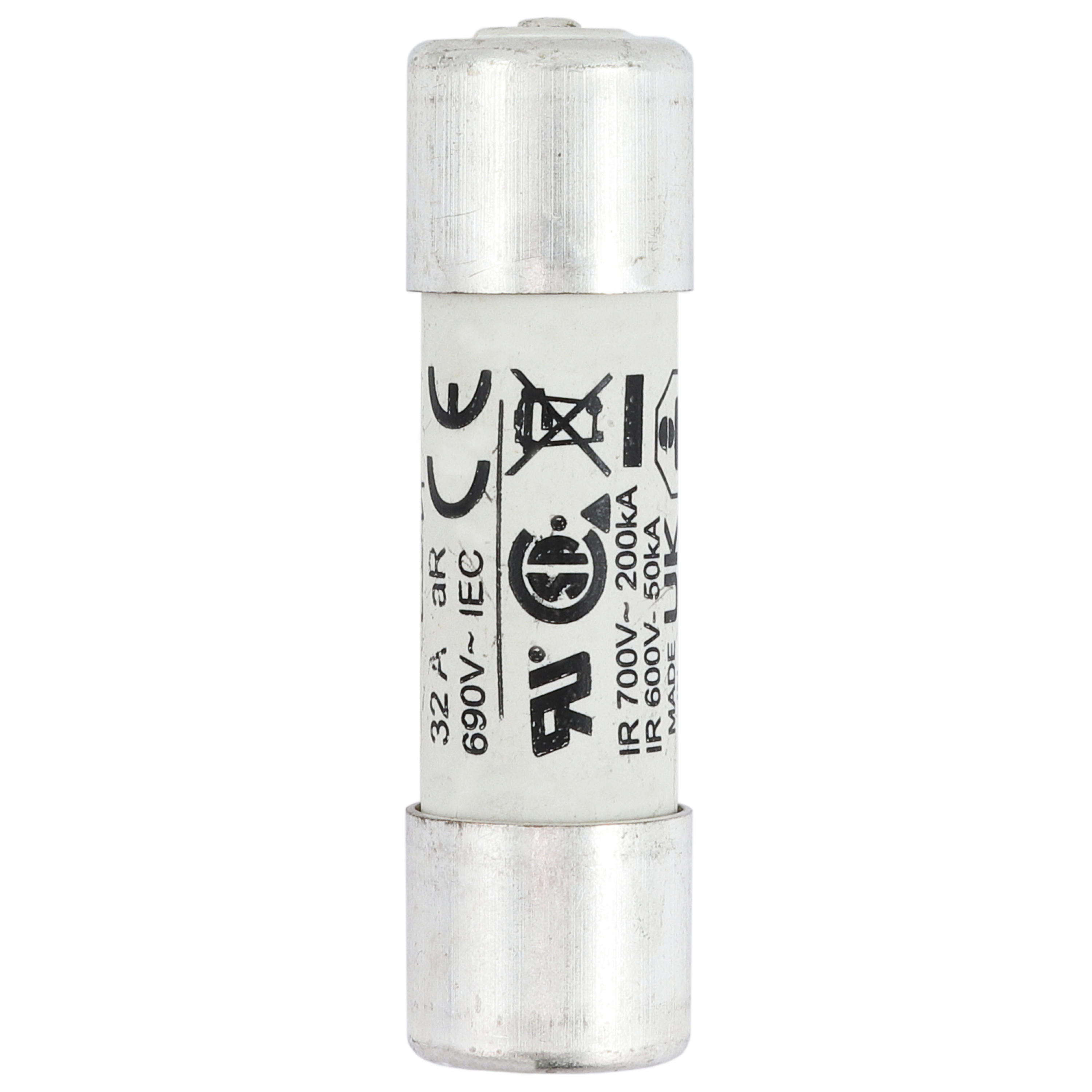 Sicherung, Sicherungseinsatz, superflink, 32 A, AC 700 V, 14 x 51 mm, aR, UL, mit Schlagmelder, zylindrisch, Gemeinsamer DC-Bus Schutz, DC-Antriebe, Leistungsumrichter/Gleichrichter und Anlasser mit reduzierter Spannung, UL248, Ausschaltvermögen 200 kA, Optionale Zusatzausrüstung Sicherungshalter CH141B