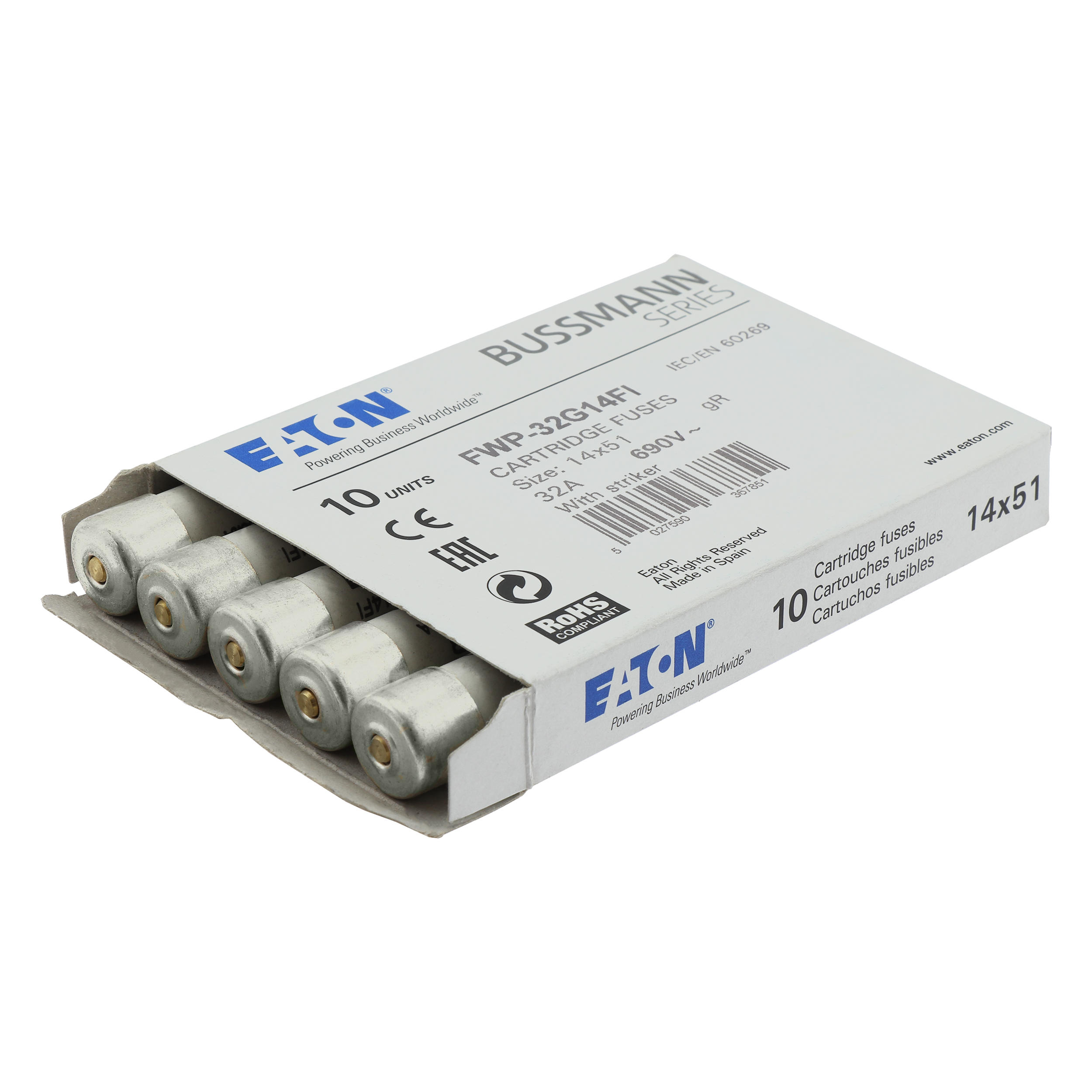 FWP-32G14FI Wkładka szybka, 32 A, AC 690 V, 14 x 51, gR, IEC, UL, wybijak