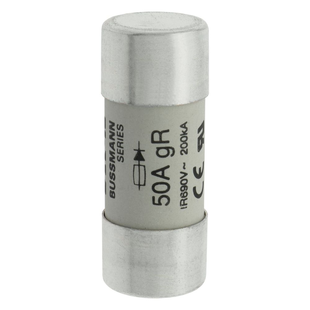 Bezpiecznik, Wkładka bezpiecznikowa, Wysoka prędkość, 50 A, AC 690 V, 22 x 58, gR, IEC, UL, cylindryczny, IEC 60269-4, UL 248-13, Zdolność wyłączania 200 kA