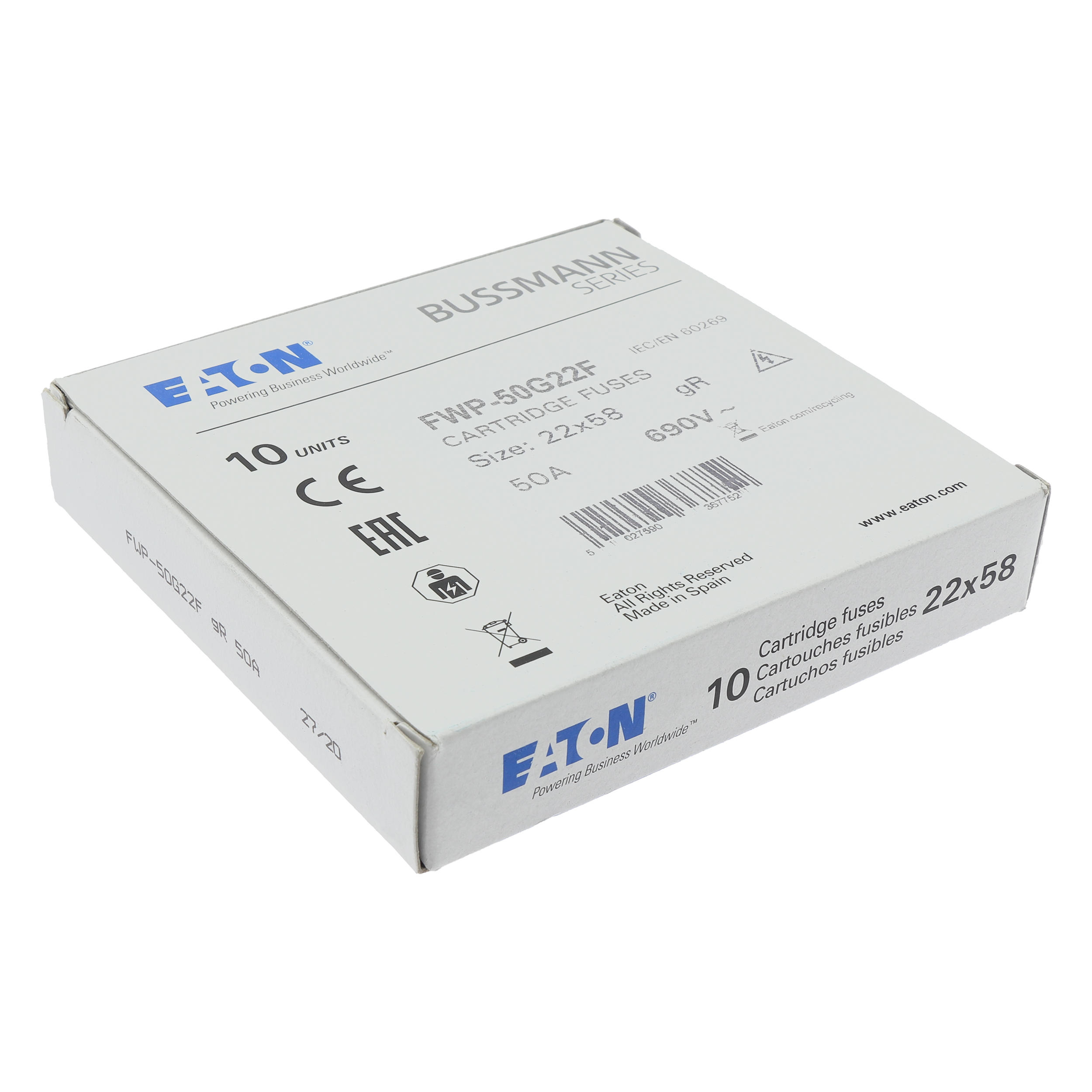 FWP-50G22F Wkładka szybka, 50 A, AC 690 V, 22 x 58, gR, IEC, UL