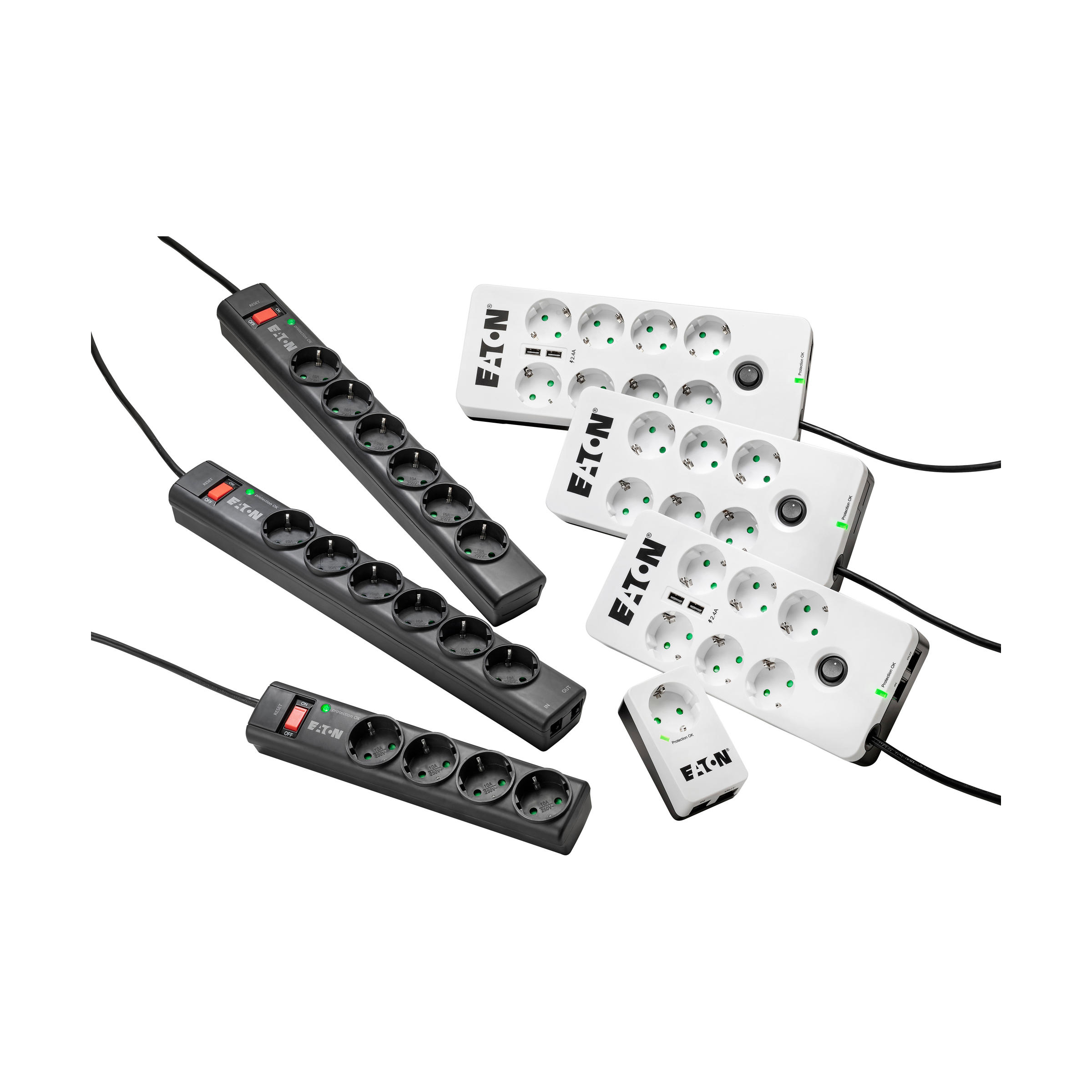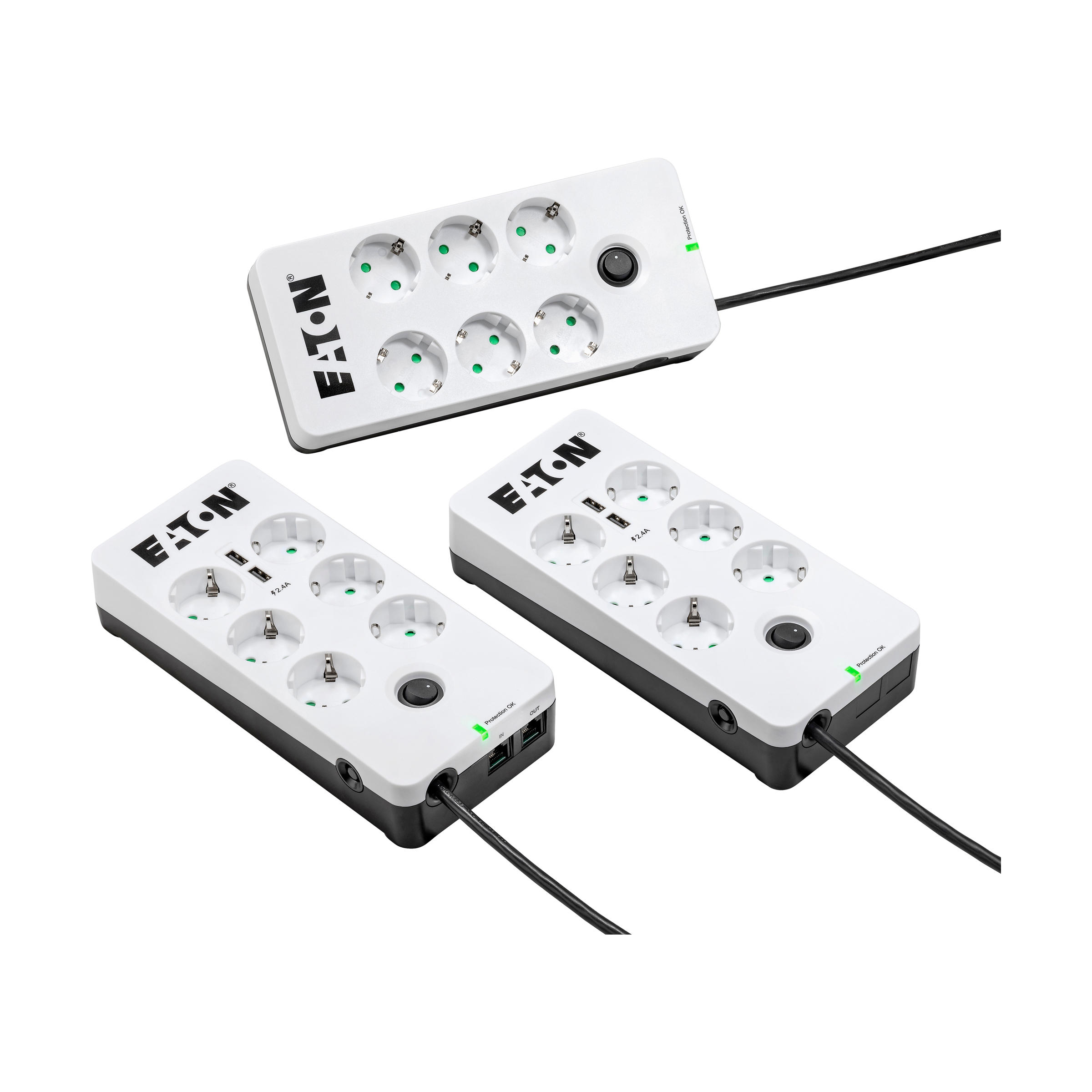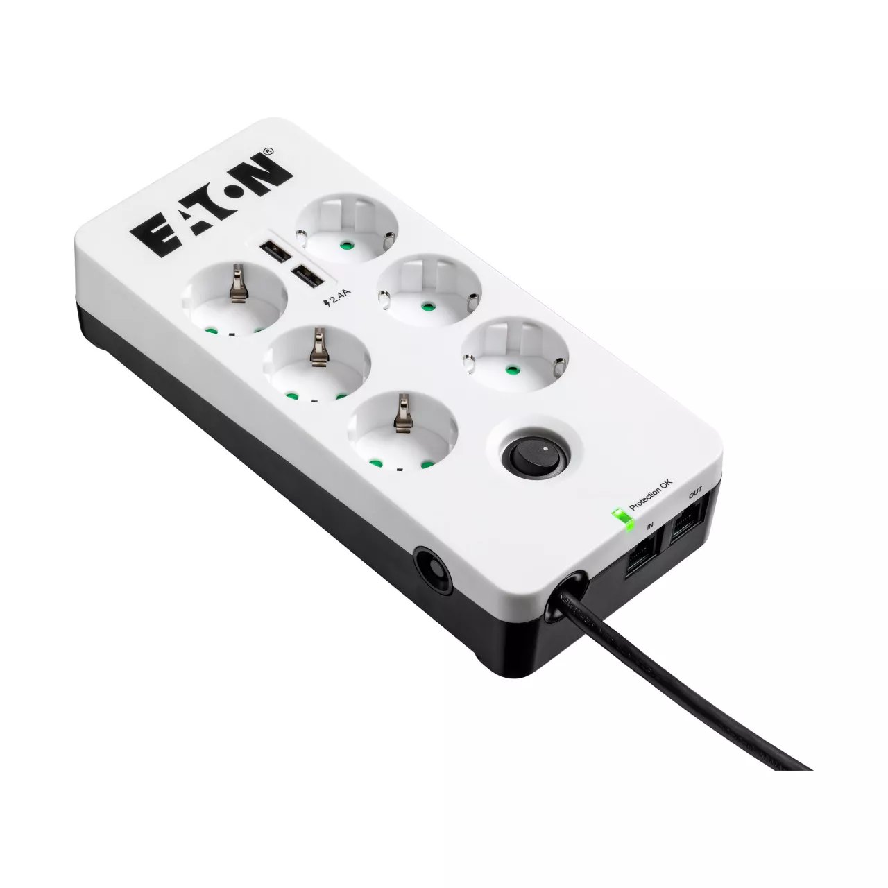 Eaton Protection Box 6 Tel@ DIN, 10 A, Wejście: Schuko, Wyjście: (6) Schuko, Ochrona linii tel./internet, (2) porty ładowania USB