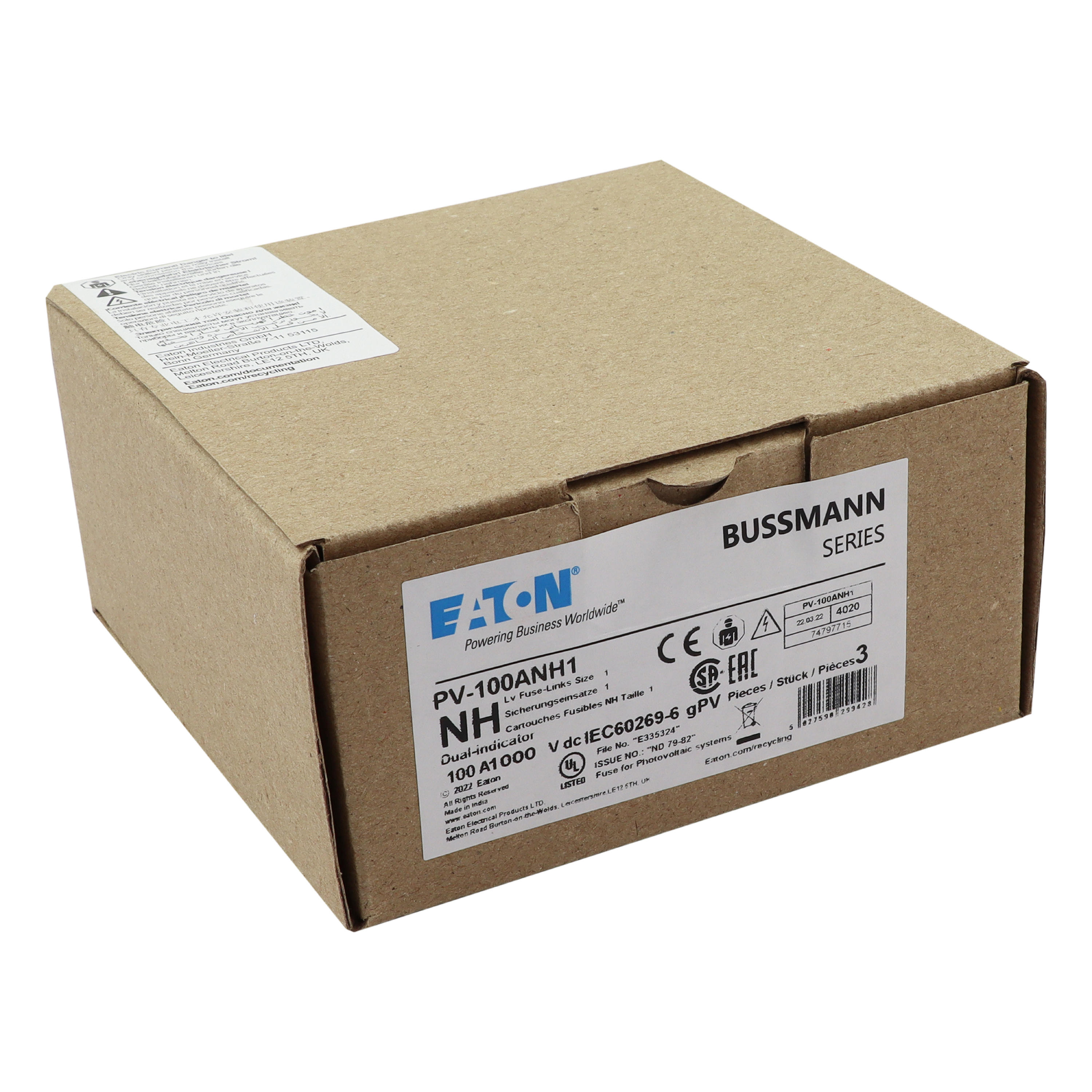 PV-100ANH1 Wkładka PV, NH, 100A 1000V DC PV rozmiar 1 podwójny wskaźnik