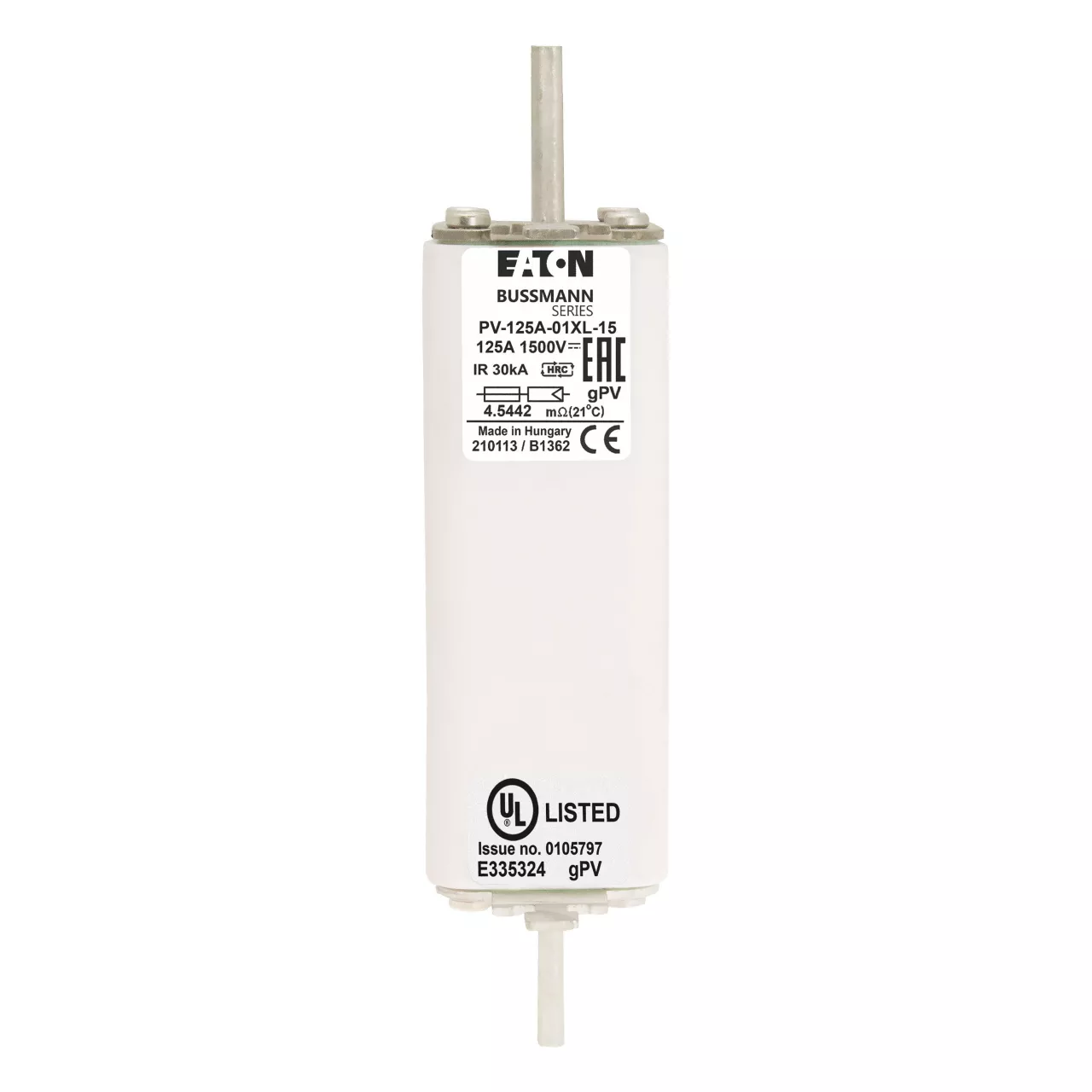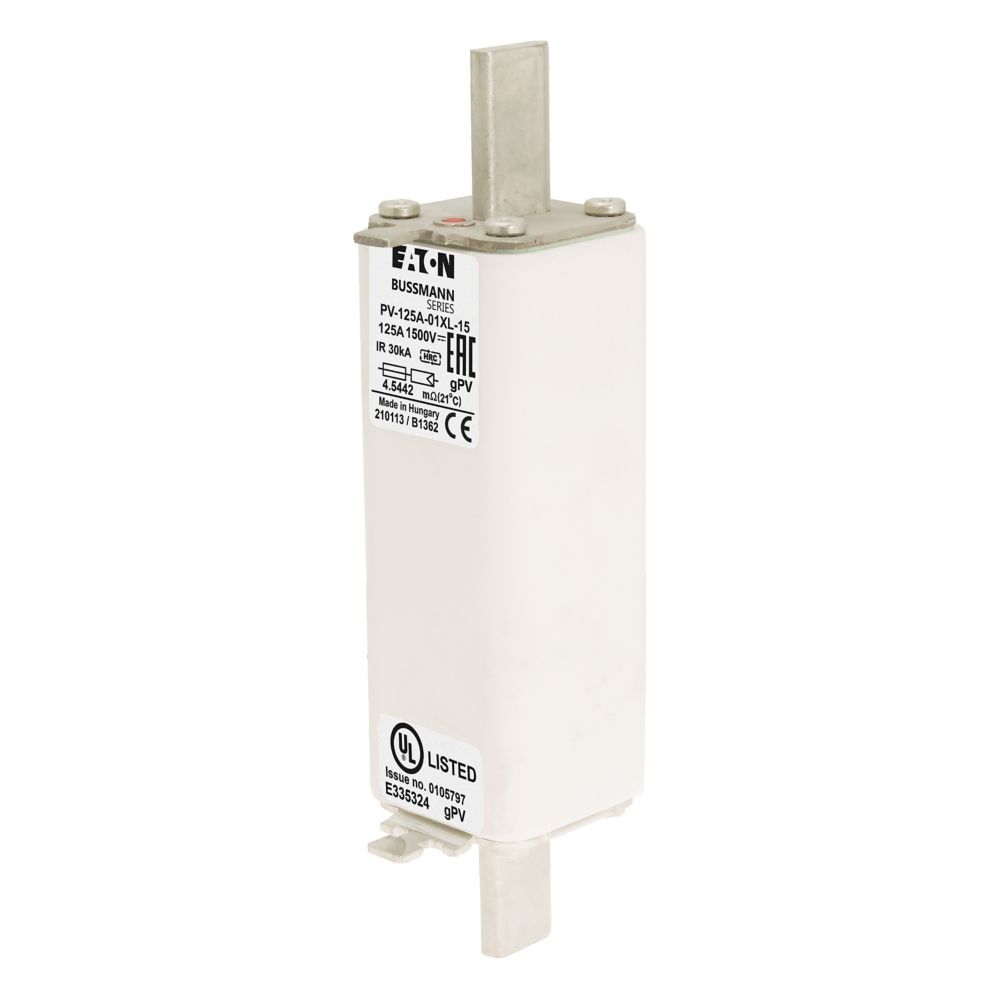 Wkładka topikowa, szybka, 125 A, DC 1500 V, 01XL, 47 x 189 mm, gPV, UL, IEC, ze wskaźnikiem, zaciski nożowe