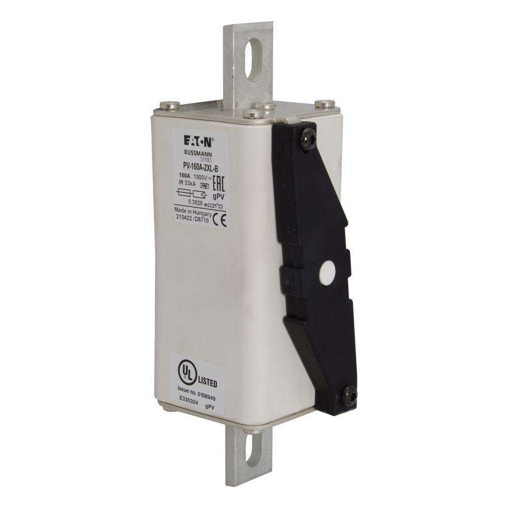 Bezpiecznik, wkładka topikowa, szybka, 160 A, 1000 V DC, 2XL, gPV, UL, IEC, korpus prostopadłościenny z zaciskami nożowymi przykręcanymi, skrzynki łączące macierzy fotowoltaicznych, IEC 60269-6, UL 2579, zdolność wyłączania 33 kA, opcjonalne akcesoria, mikroprzełącznik 170H0069