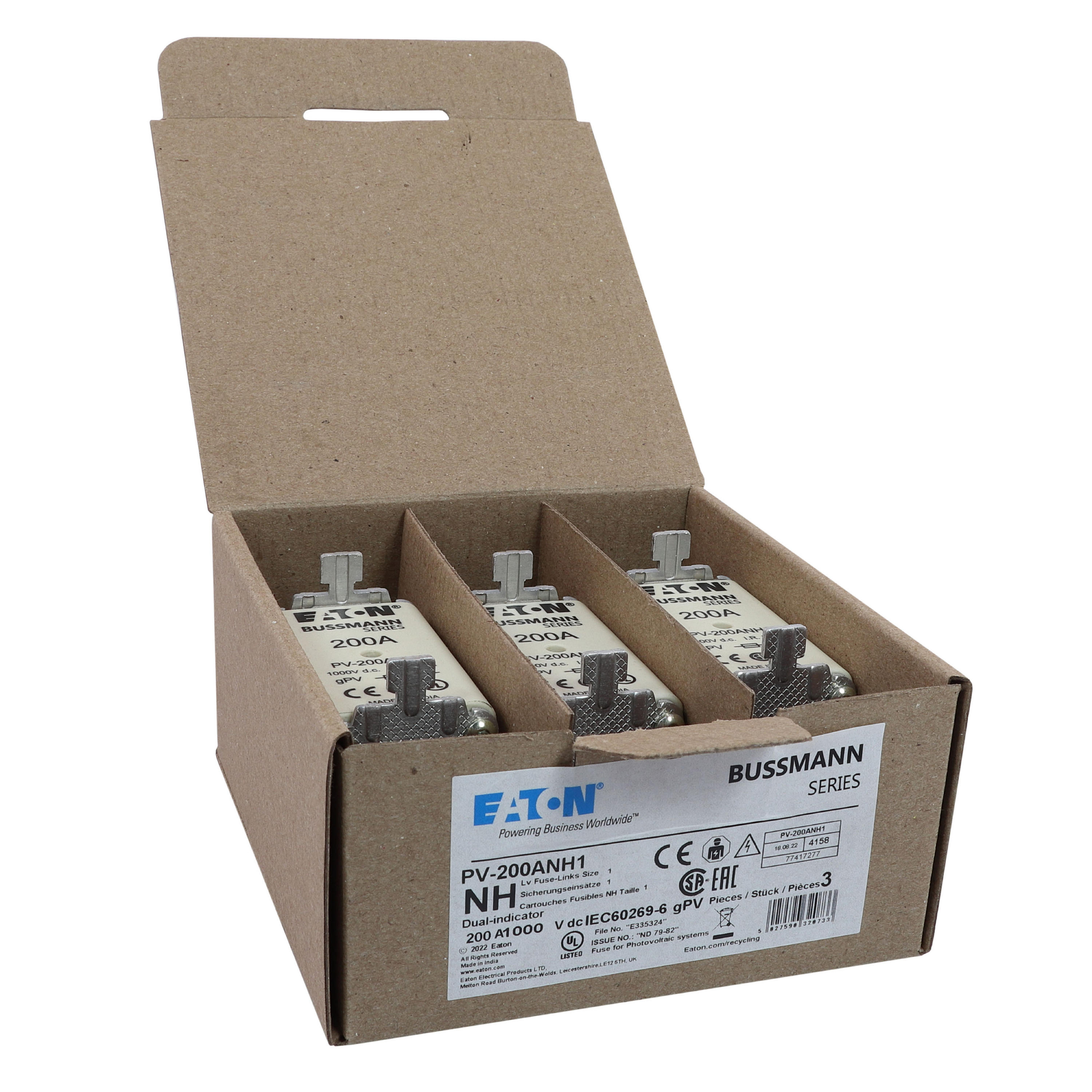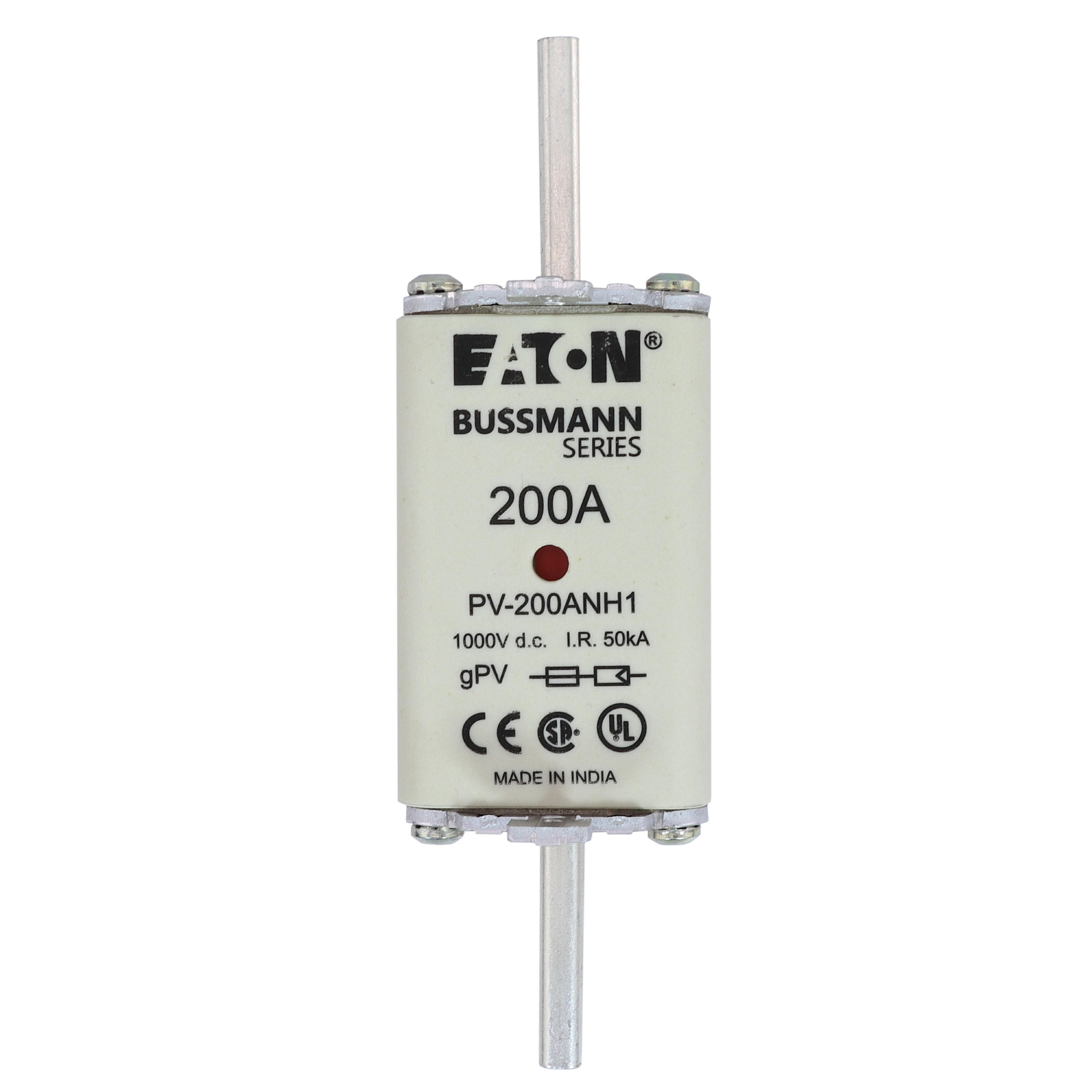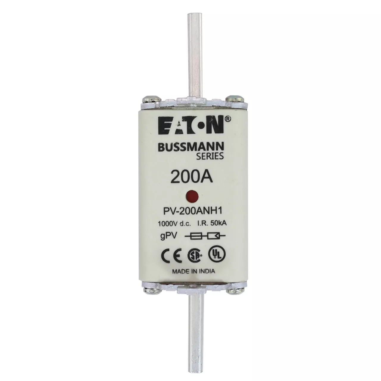 Bezpiecznik, wkładka topikowa, szybka, 200 A, 1000 V DC, NH1, gPV, UL PV, UL, IEC, podwójny wskaźnik, korpus prostopadłościenny z zaciskami nożowymi, uchwyty nieizolowane, ochrona łączników i rozłączników paneli fotowoltaicznych, UL 2579, IEC 60269-6, zdolność wyłączania 50 kA, opcjonalne akcesoria podstawa bezpiecznikowa SD1-D-PV