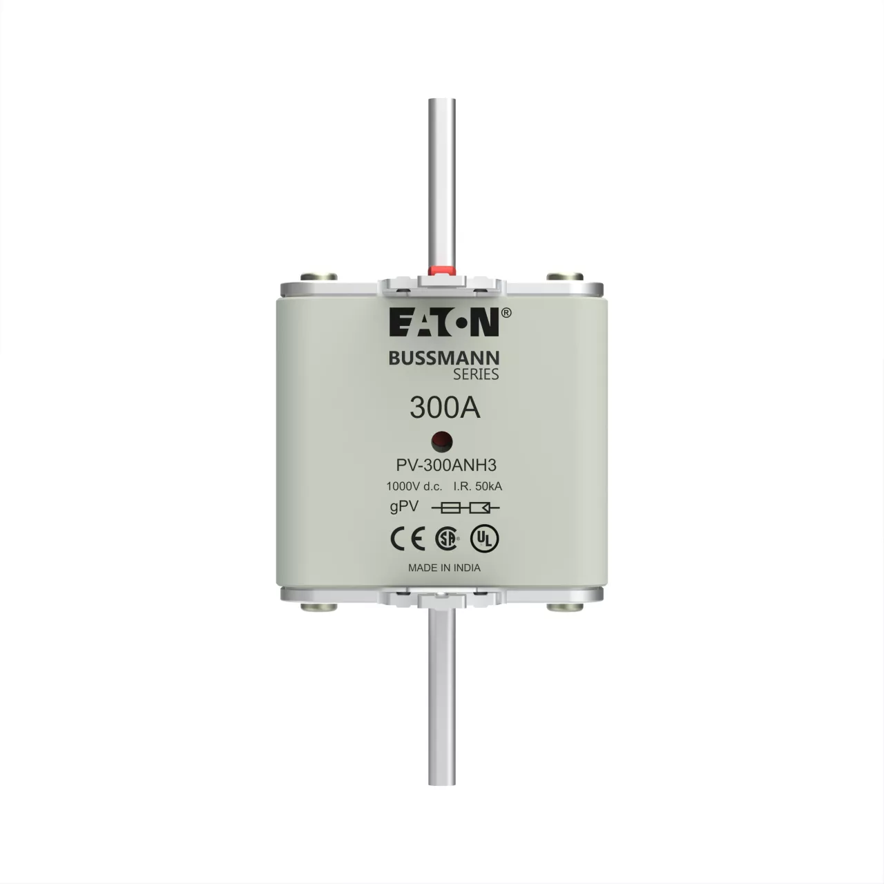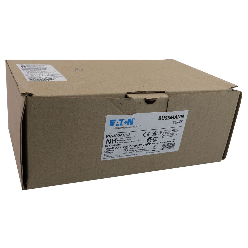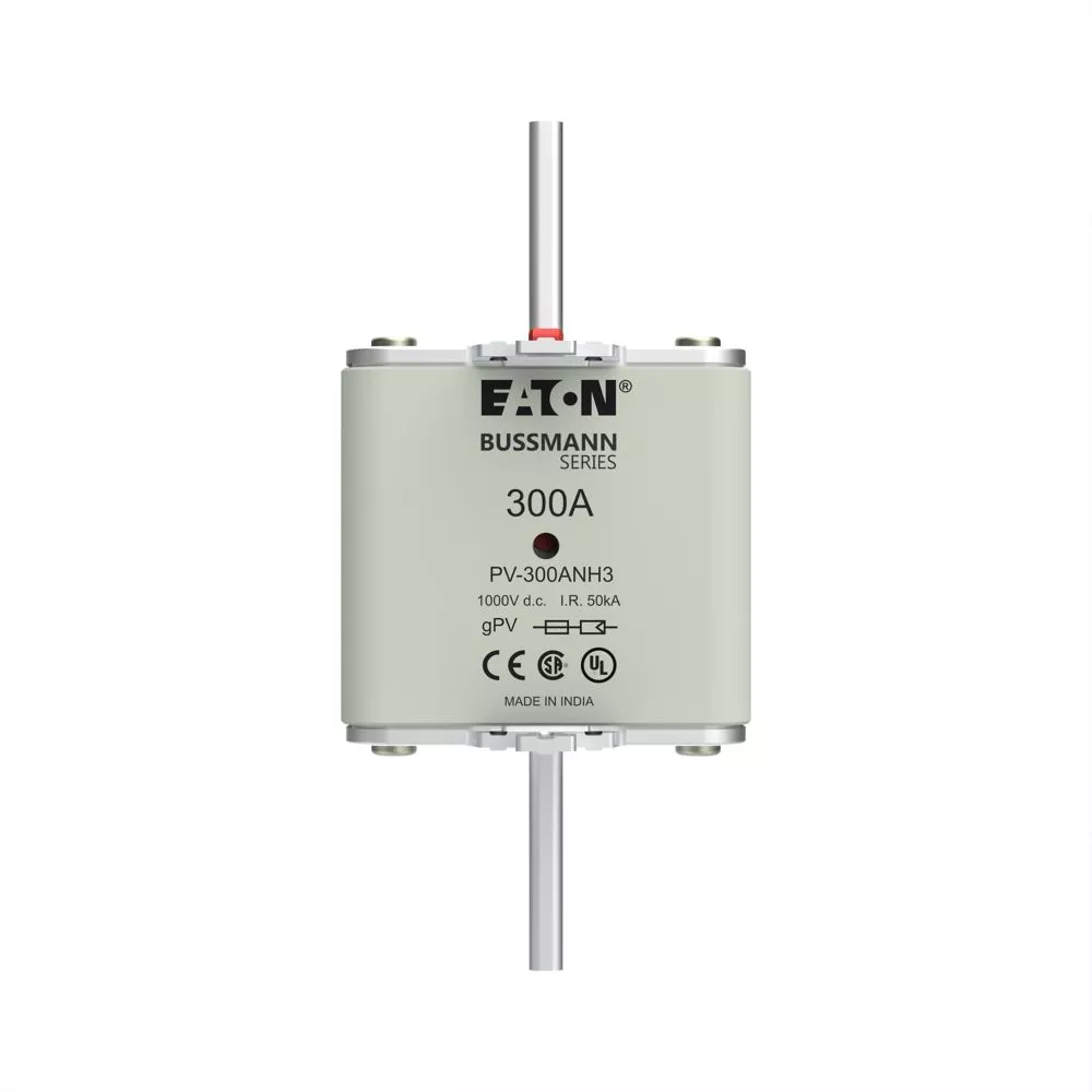 Bezpiecznik, wkładka topikowa, szybka, 300 A, 1000 V DC, NH3, gPV, UL PV, UL, IEC, podwójny wskaźnik, korpus prostopadłościenny z zaciskami nożowymi, uchwyty nieizolowane, ochrona łączników i rozłączników paneli fotowoltaicznych, UL 2579, IEC 60269-6, zdolność wyłączania 50 kA, opcjonalne akcesoria podstawa bezpiecznikowa SD3-D-PV