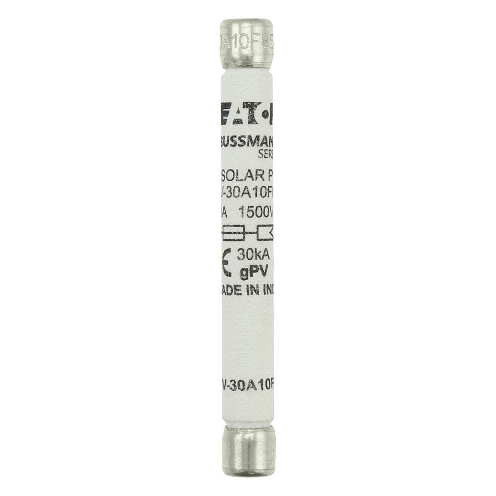 Bezpiecznik, wkładka topikowa, szybka, 30 A, 1500 V DC, IEC60269-6 type A, 10 x 85 mm, gPV, IEC, cylindryczny, funkcja zabezpieczająca łańcuchów fotowoltaicznych, IEC 60269-6, UL248-19, zdolność wyłączania 30 kA
