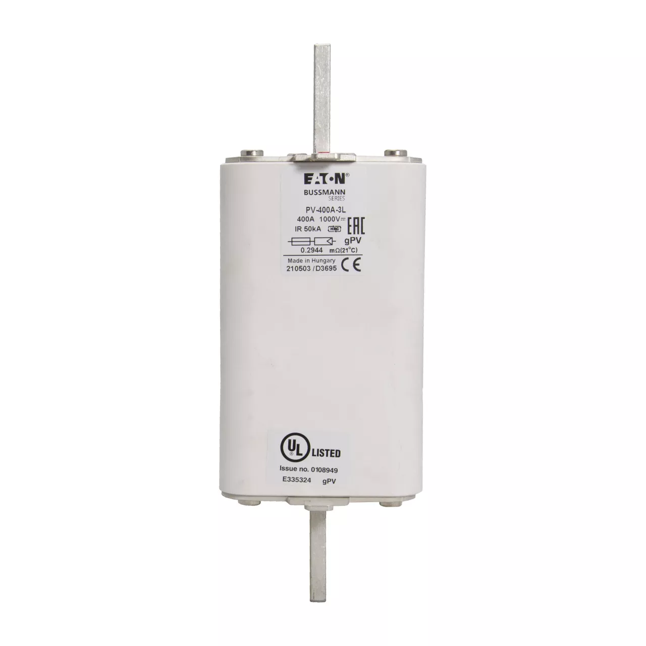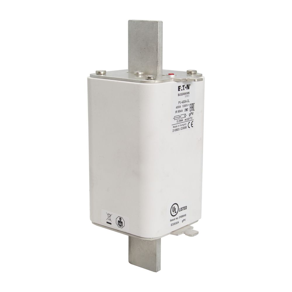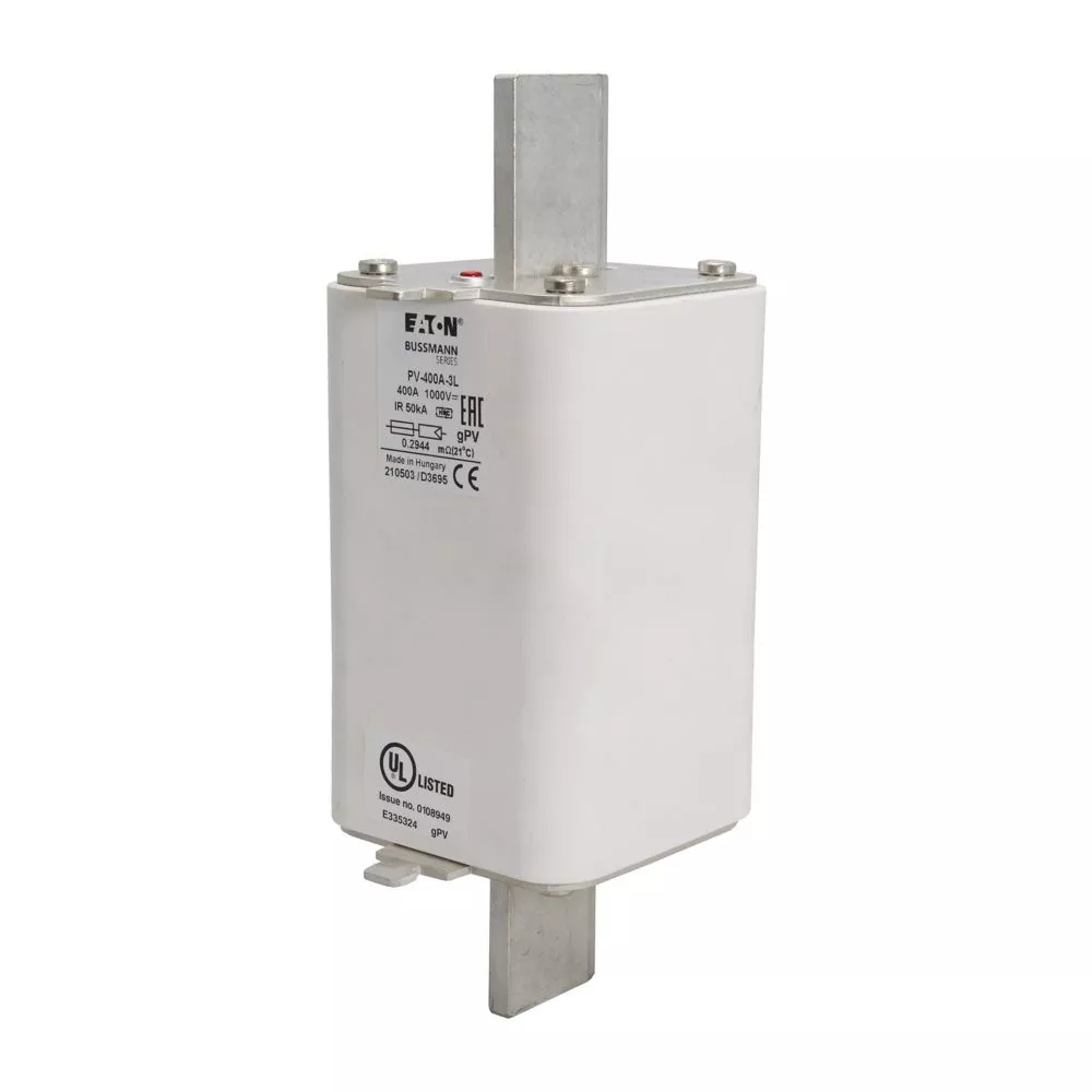 Bezpiecznik, wkładka topikowa, szybka, 400 A, 1000 V DC, 3L, gPV, UL, IEC, korpus prostopadłościenny z zaciskami nożowymi, skrzynki łączące macierzy fotowoltaicznych, IEC 60269-6, UL 2579, Zdolność wyłączania 50 kA kA, opcjonalne akcesoria, podstawa bezpiecznikowa SD3L-S lub mikroprzełącznik 170H0069