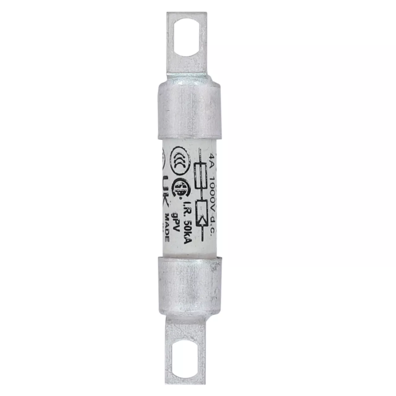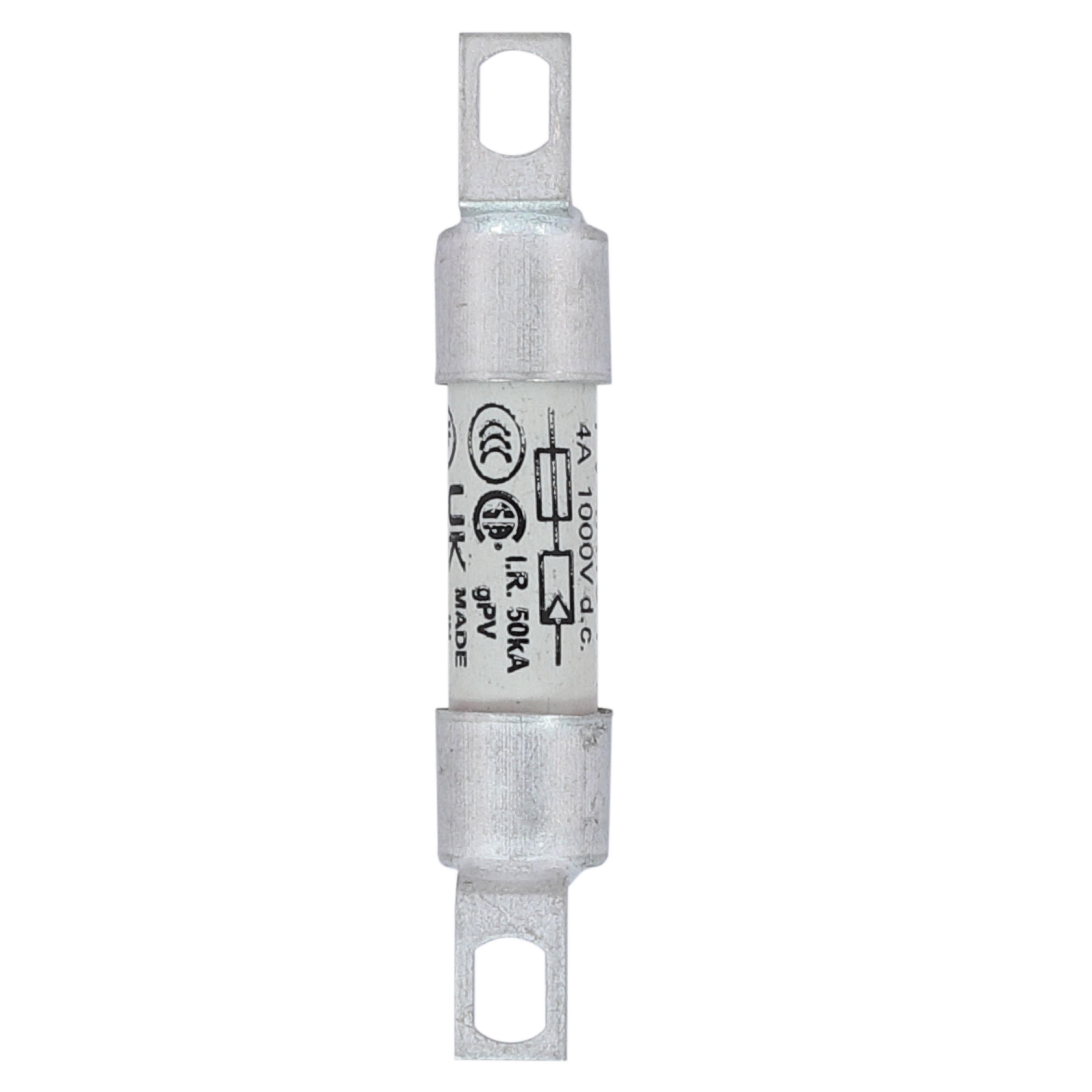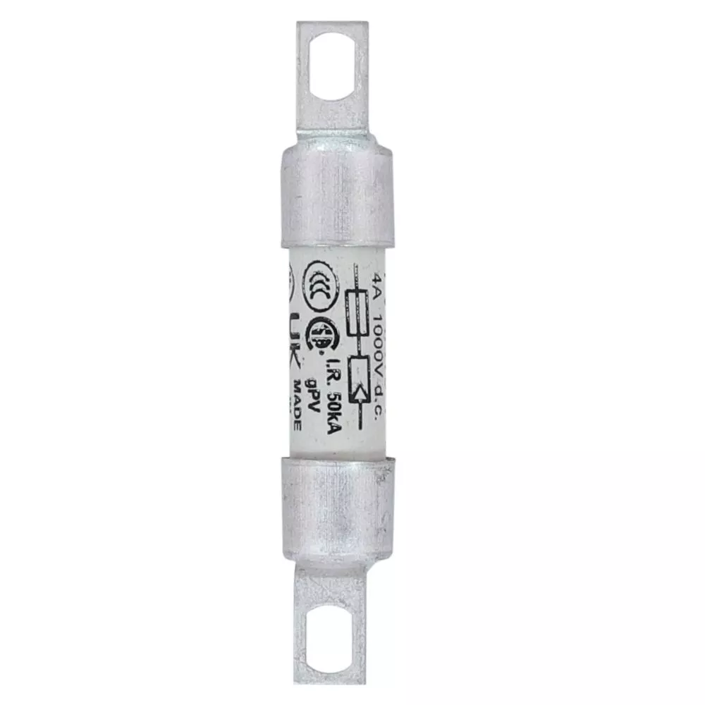 Sicherung, Sicherungseinsatz, superflink, 4 A, DC 1000 V, IEC 60269-6 Typ A, 10 x 59 mm, gPV, UL PV, IEC, UL, zylindrisch, gekröpfte verschraubte Anschlussfahnen, Photovoltaikschutz, IEC 60269-6, UL 249-19, Ausschaltvermögen 50 kA