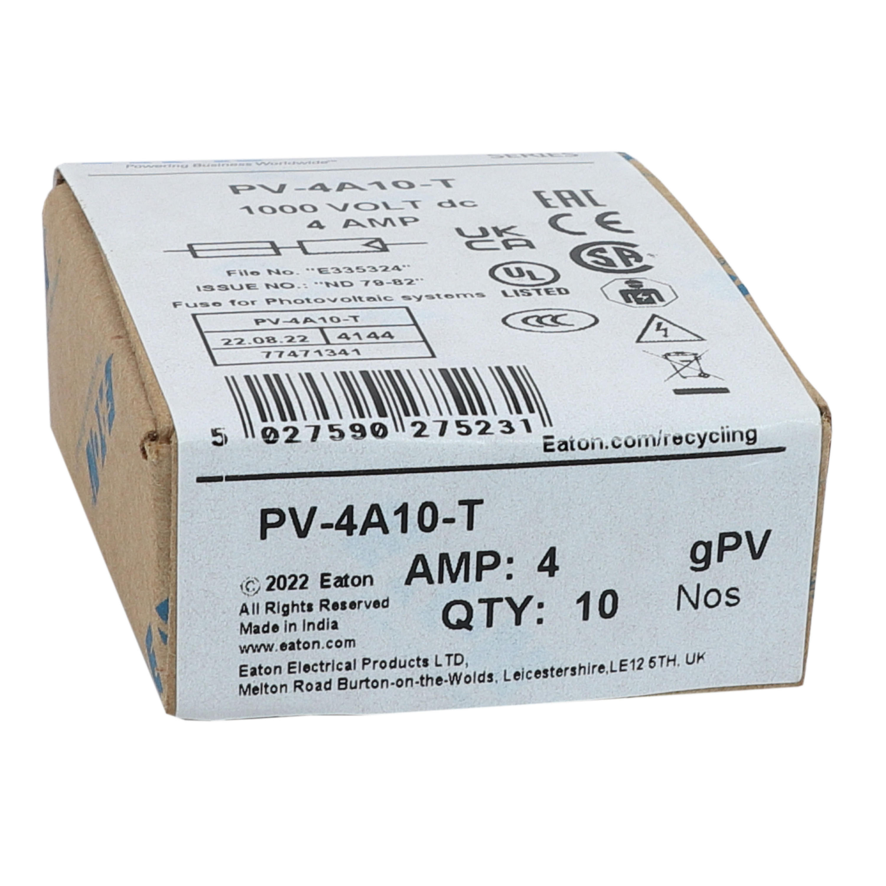 PV-4A10-T Wkładka PV, cylindryczna, 4A, 1000V DC, 10 X 38MM, z etykietą