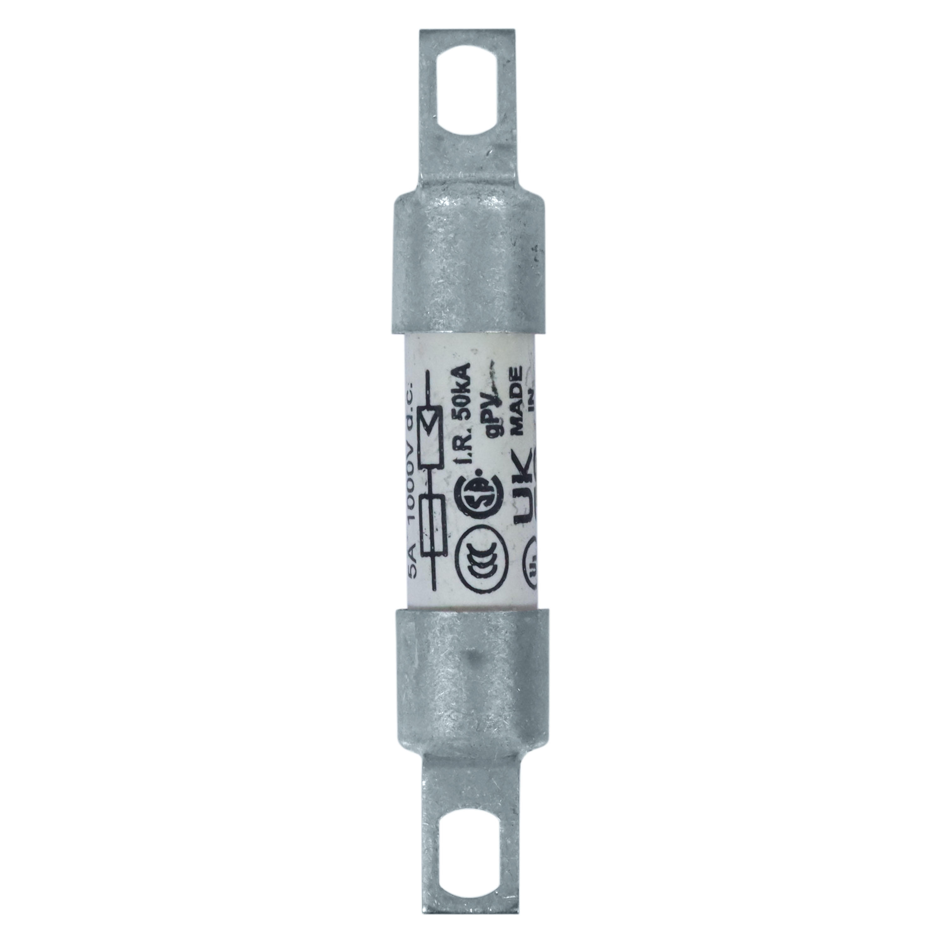 Bezpiecznik, wkładka bezpiecznikowa, szybki, 5 A, 1000 V DC, IEC 60269-6 typ A, 10 x 59 mm, gPV, UL PV, IEC, UL, cylindryczny z przesuniętymi przykręcanymi uchwytami, ochrona instalacji fotowoltaicznych, IEC 60269-6, UL 249-19, zdolność wyłączania 50 kA