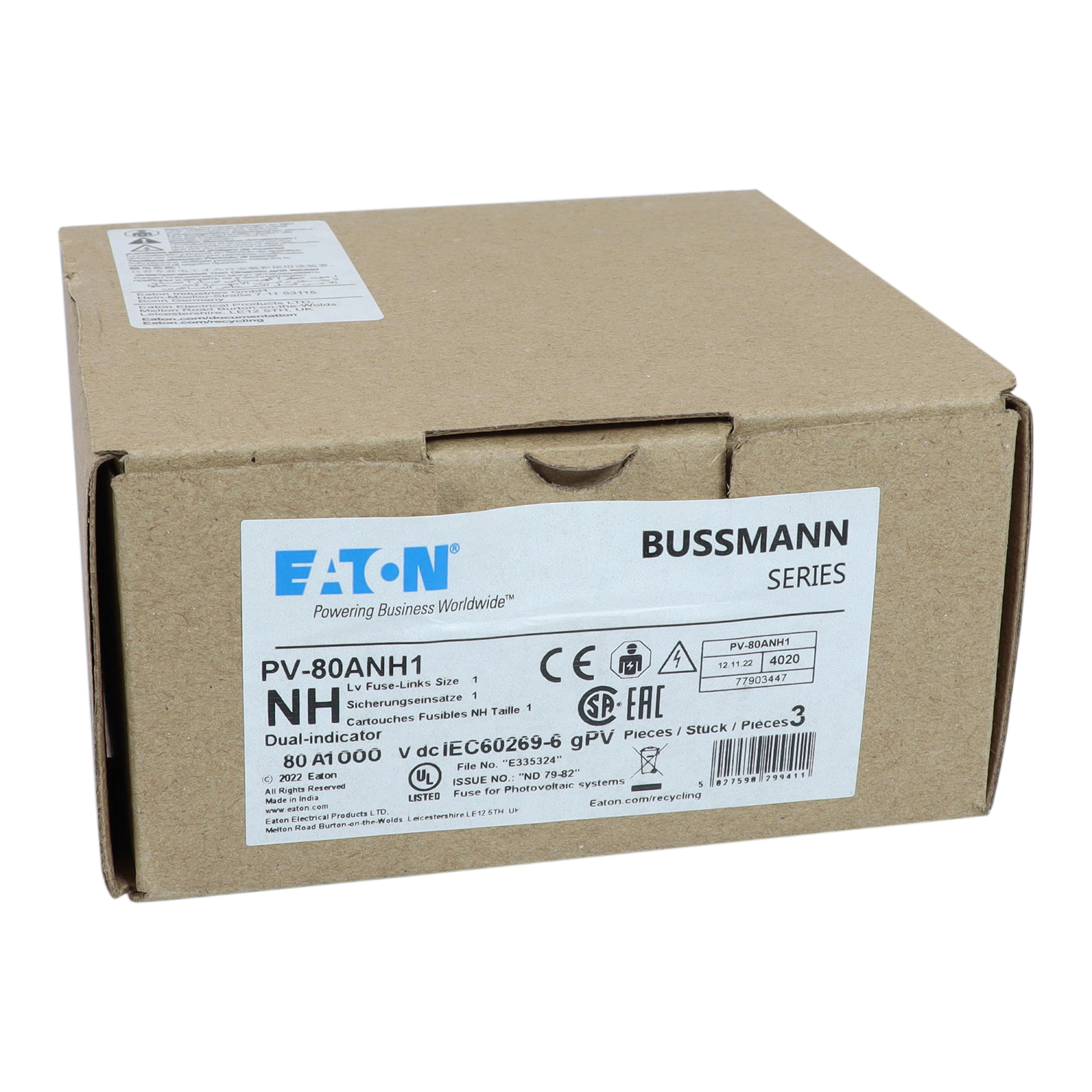 PV-80ANH1 Wkładka PV, NH, 80A 1000V DC PV rozmiar 1 podwójny wskaźnik