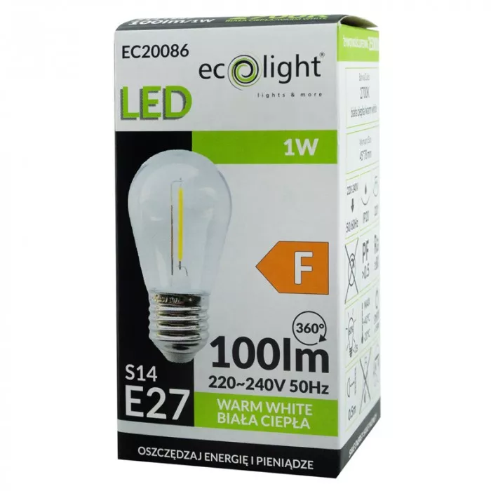 Żarówka Filament Golf Ball S14 E27 1W 2700K 100lm