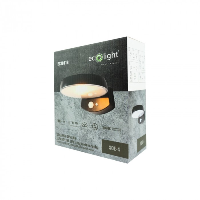 Solarna oprawa elewacyjna LED SOE-4 to innowacyjne rozwiązanie oświetleniowe, idealne do zastosowań zewnętrznych. Dzięki zasilaniu energią słoneczną i wbudowanym czujnikom, lampa zapewnia zarówno oszczędność energii, jak i wygodę użytkowania. Doskonale nadaje się do oświetlenia elewacji budynków, podjazdów, ogrodów oraz innych przestrzeni zewnętrznych, łącząc funkcjonalność z nowoczesnym designem.