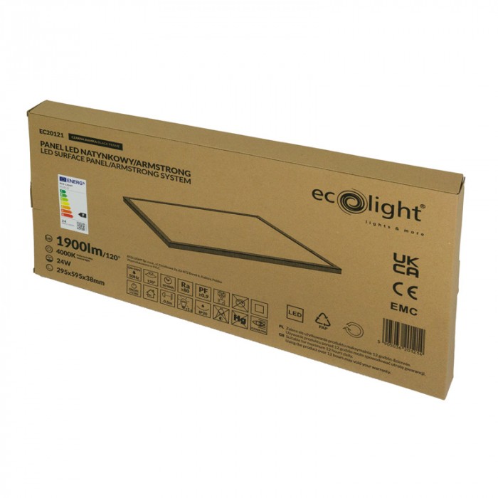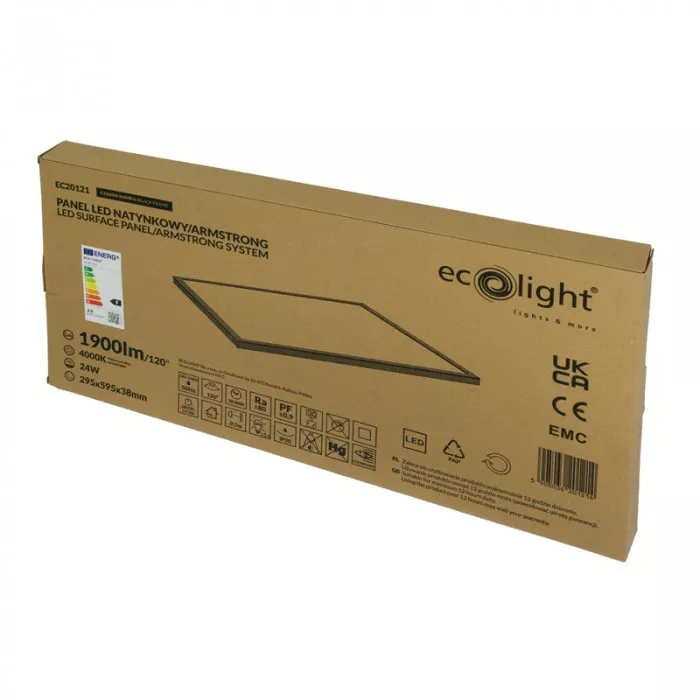 Panel LED 595x295 24W 4000K 1900lm N/T CZARNY