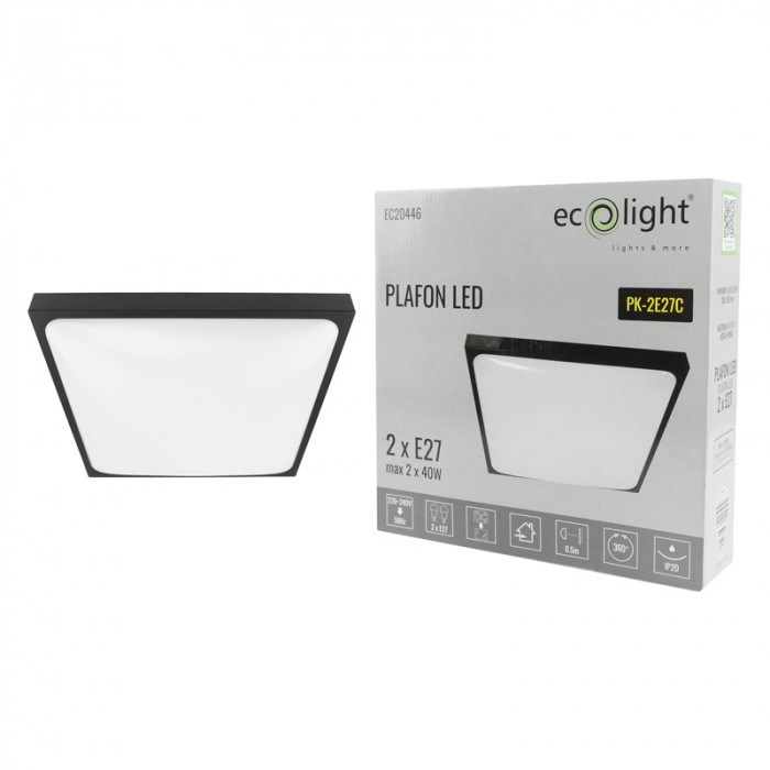 PLAFON 2xE27 N/T KWADRAT CZARNY
