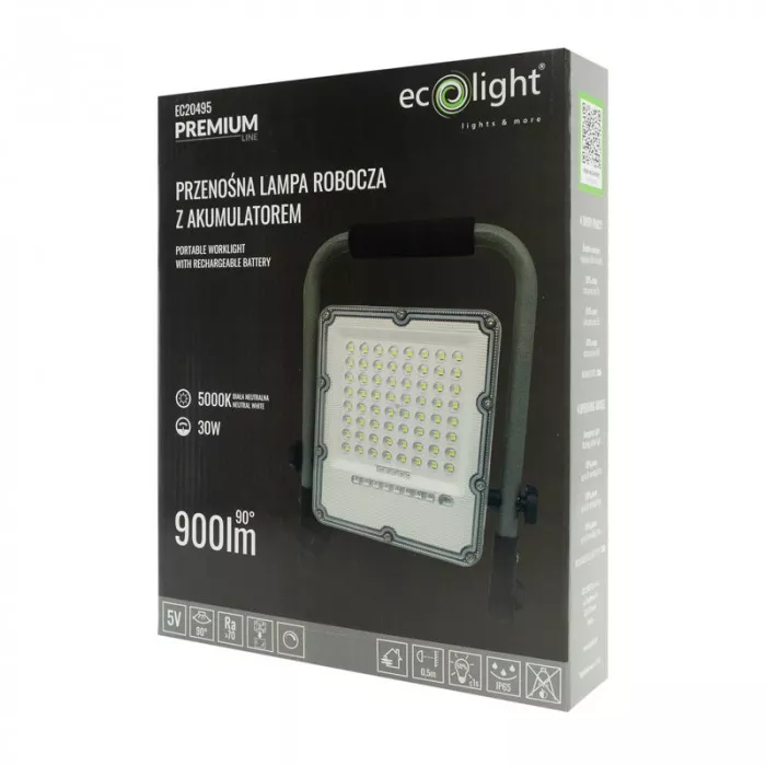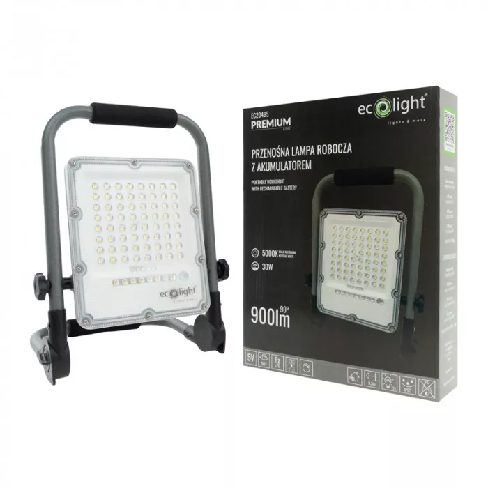 NAŚWIETLACZ ROBOCZY LED Z AKUMULATOREM 30W 5000K