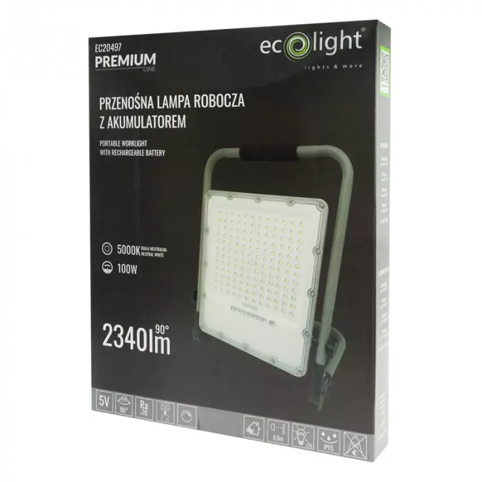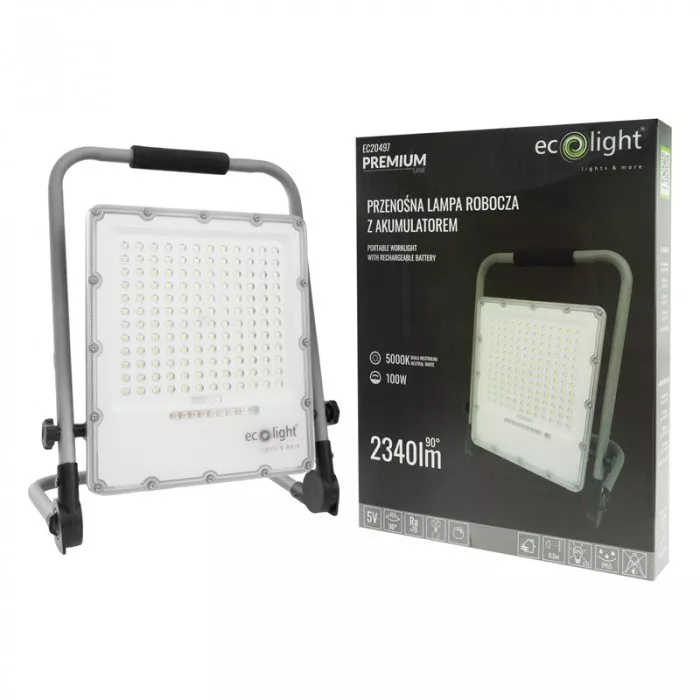 NAŚWIETLACZ ROBOCZY LED Z AKUMULATOREM 100W 5000K