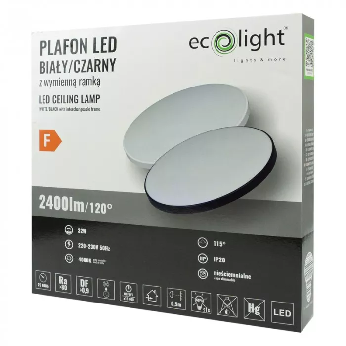 PLAFON LED 32W 4000K Z WYMIENNĄ RAMKĄ B/CZ