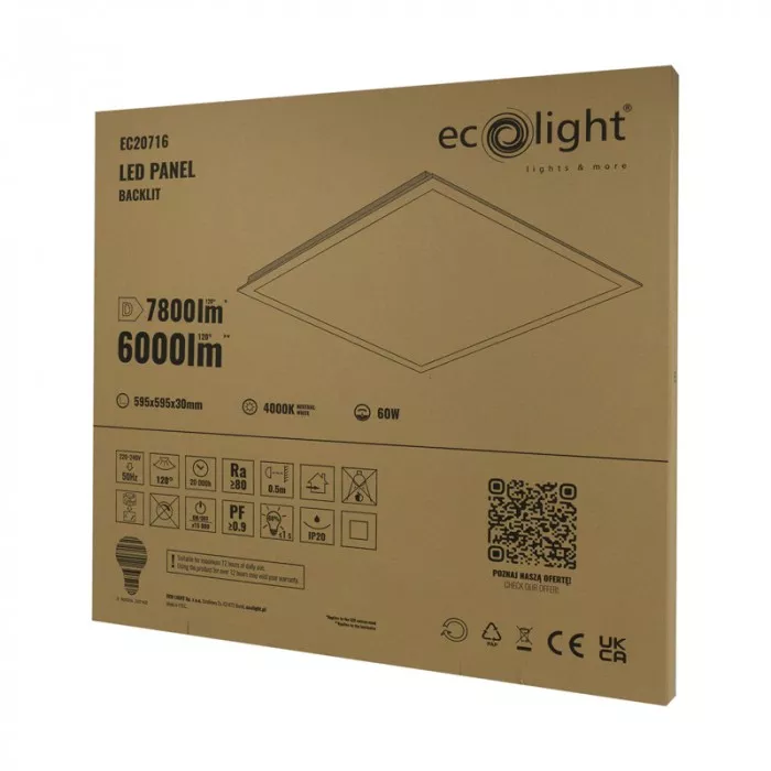 Panel LED Backlit 60W 6000lm 595x595x30 4000K