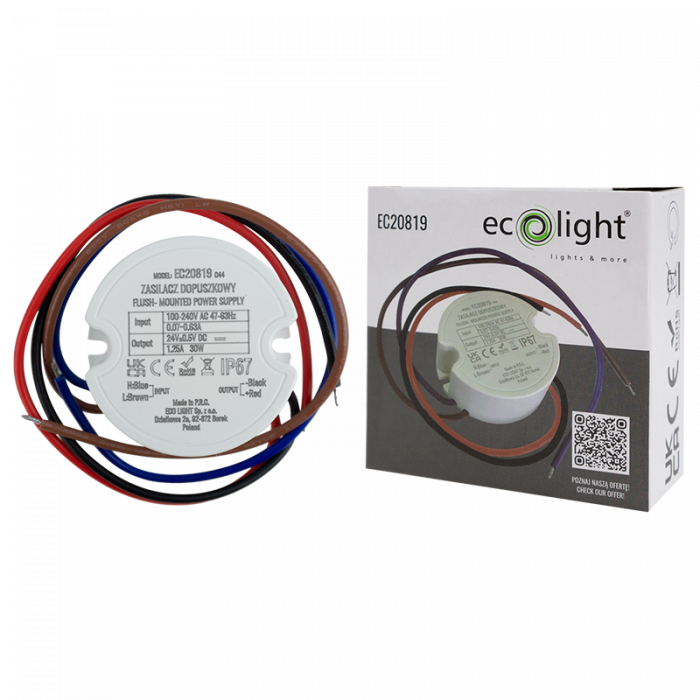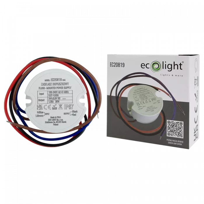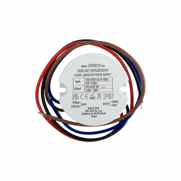 Zasilacz do puszk fi60 1,25A 30W 24V IP67 50x50x22