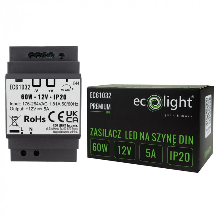 Zasilacz na szynę DIN PREMIUM 12V 60W