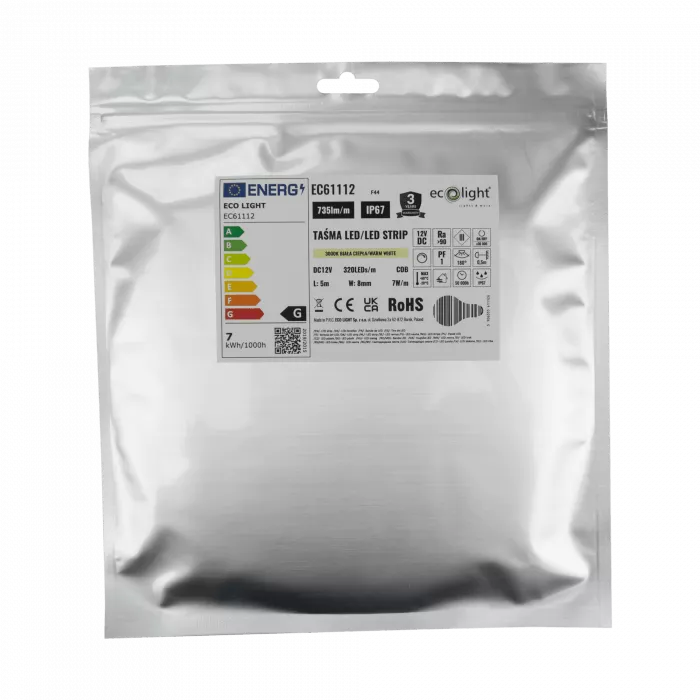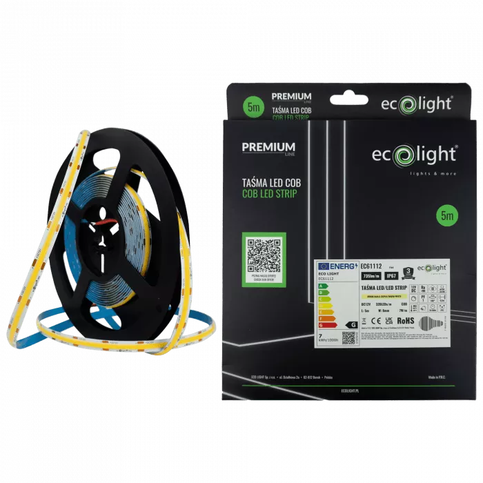 Taśma LED COB 12V 320 7W/m 3000K 735lm IP67 5m