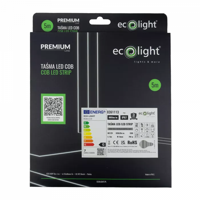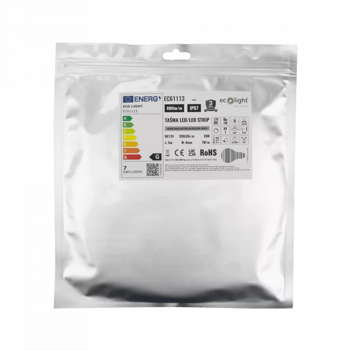 Taśma LED COB 12V 320 7W/m 4000K 805lm IP67 5m