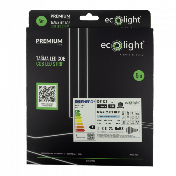 Efektywność energetyczna: Zużycie energii na poziomie 9W/m zapewnia energooszczędność przy jednoczesnym zachowaniu wysokiej wydajności świetlnej.