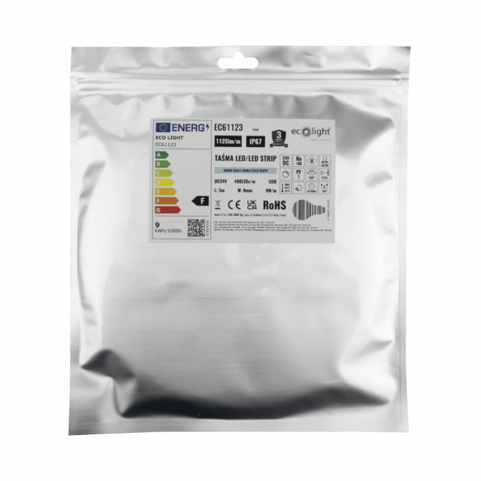 Taśma LED COB 24V 480 9W/m 6000K 1125lm IP67 5m