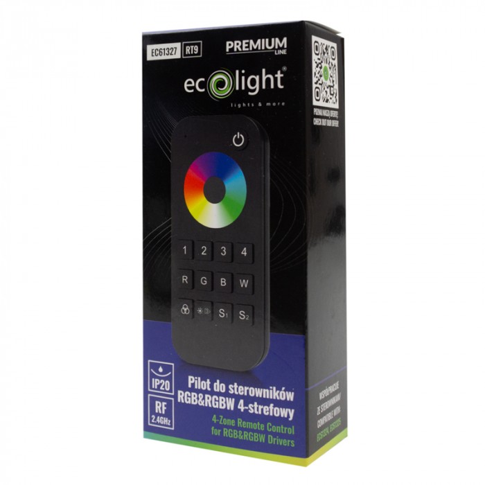 Pilot RT9 RF do sterowników RGB/RGBW – 4-strefowy, dotykowy, czarny