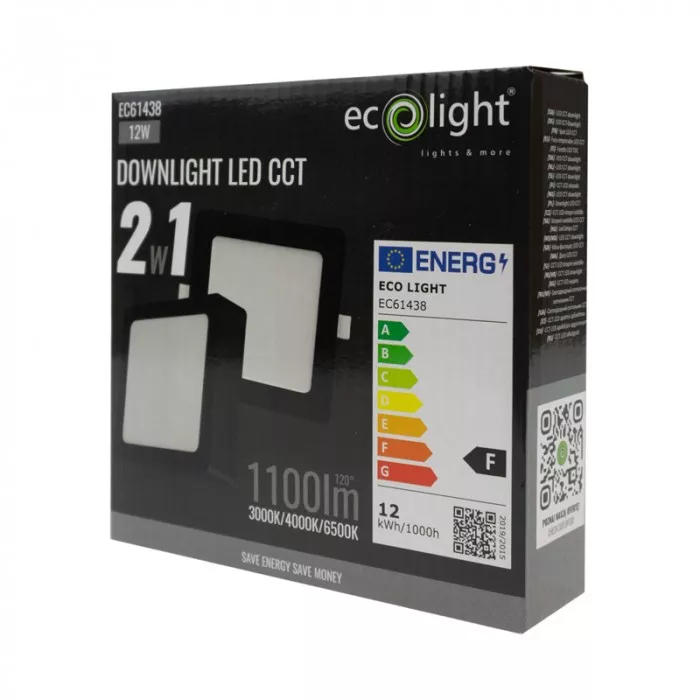 Downlight 12W kwadrat CCT 2w1 czarny