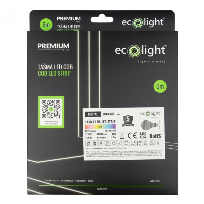 Taśma LED 12V COB DIGITAL RGB 480 5M