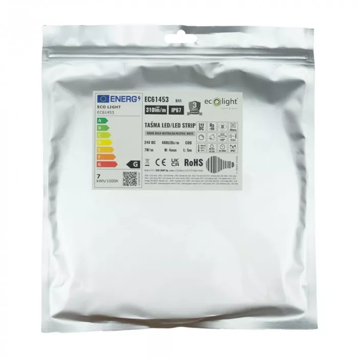 Taśma 24V Neon COB 480 4000K 7W 310lm/m IP67 5M