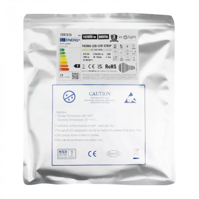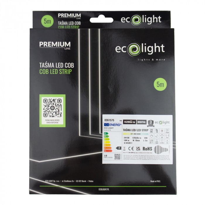 Taśma LED COB DIGI. 24V 576 18W/m CCT 1620lm/m 5m