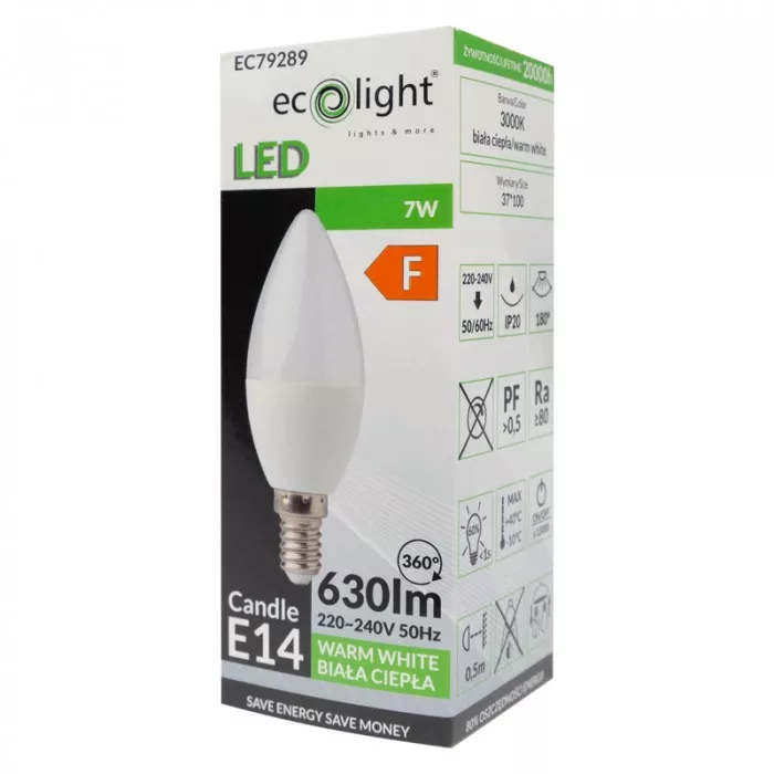 CANDLE E14 7W 3000K 630lm