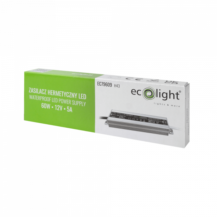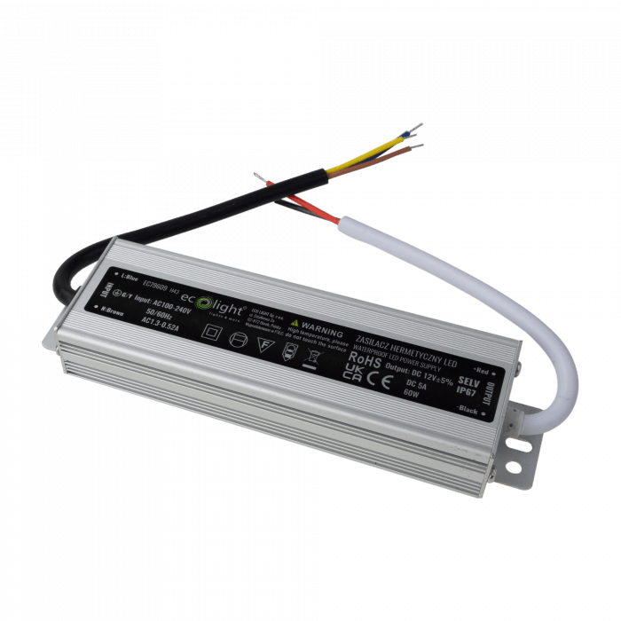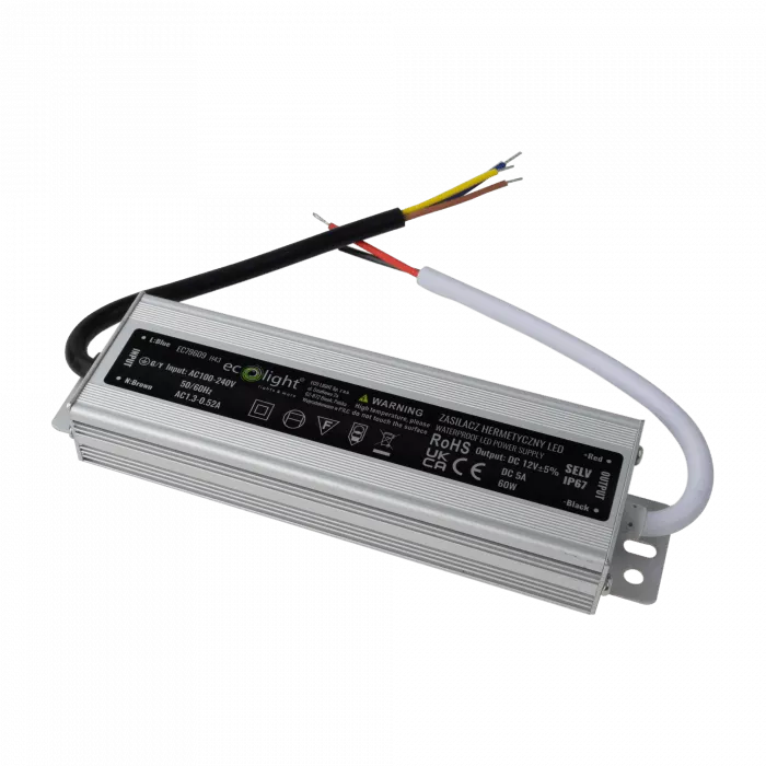Zasilacz LED hermetyczny 60W 12V 5A 180x40x22